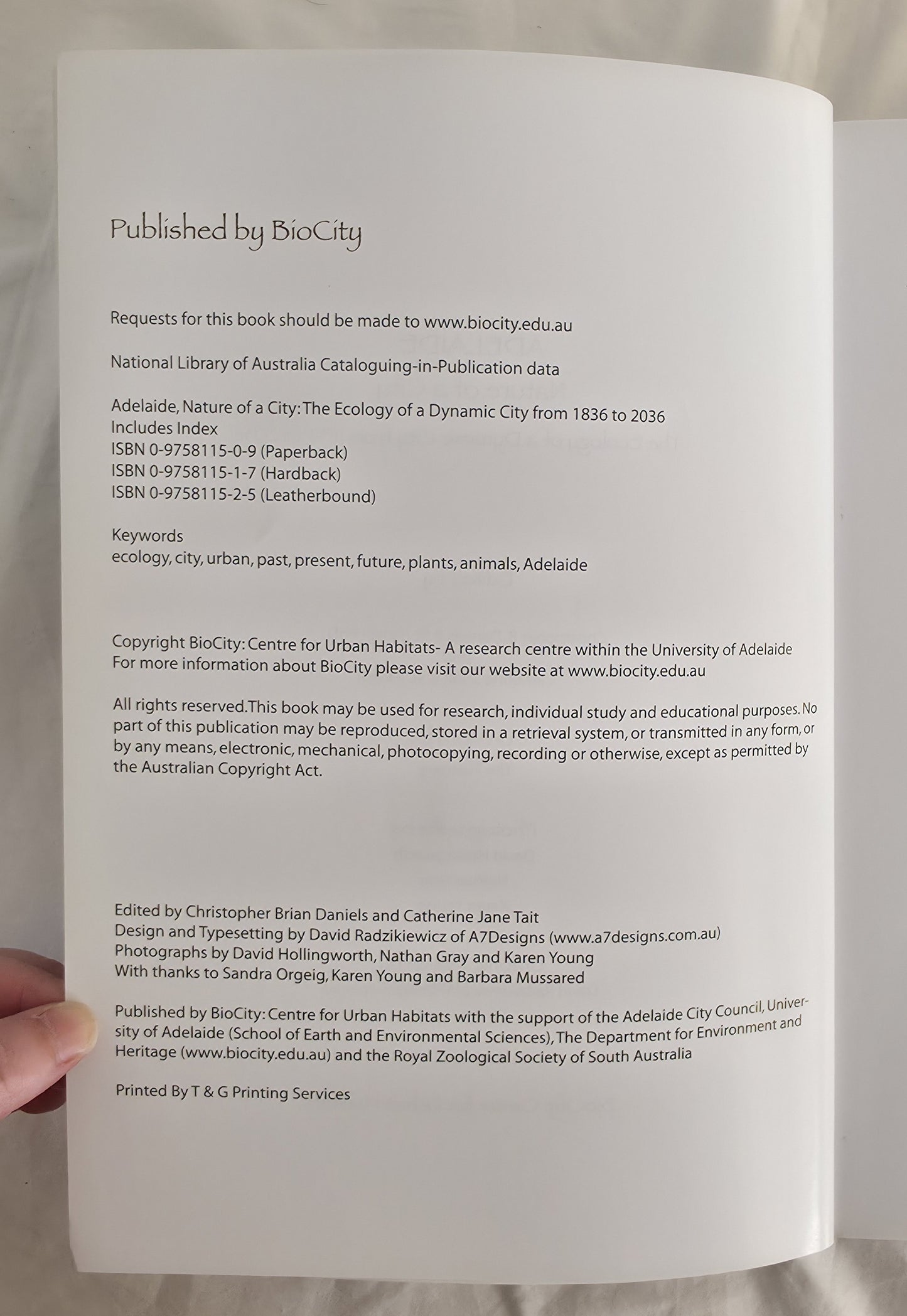 Biocity, 2005, ISBN 0975811509, colour photographs throughout, paperback