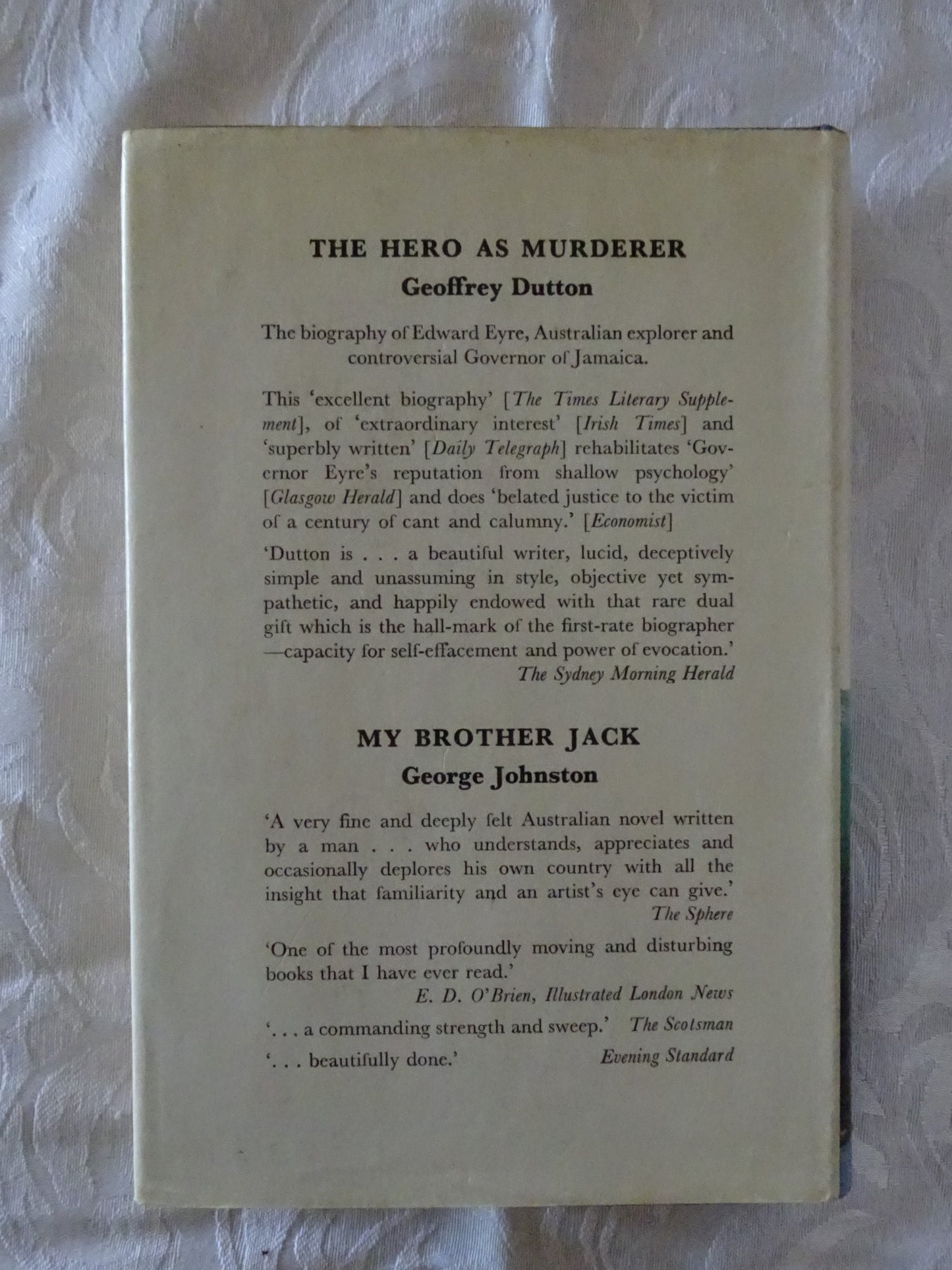 'Andy has one love that transcends all others - flying; and one hate, authority. The former lands him in the Royal Australian Air Force, the latter more than once in a military prison. On balance it's worth it, to him and to us; never since St. Exupery has anyone so enjoyed the beauty and exhilaration of flying nor has anyone ever more enjoyed a party and the other fun and games that generally end up in trouble for Andy. He is a born leader, whether of the pious intellectual friend who worships him, or the born black marketer who will do anything for him, even below cost. The climax is worthy of a hero - an adventure involving an enchanting refugee girl, a captured Japanese officer, an aeroplane, a volcano in eruption and a sort of Circe's island where the more violent human emotions find their expression and outlet.'