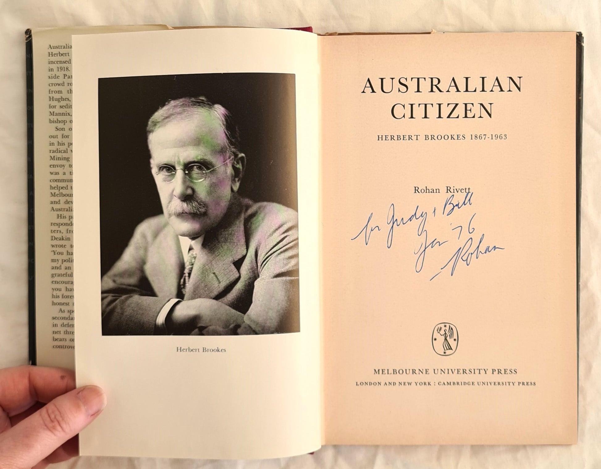 Melbourne University Press, 1965, [First Edition], [SIGNED], black and white photographic plates, black and white illustrations, black and white photographic frontispiece, hardcover, dustjacket