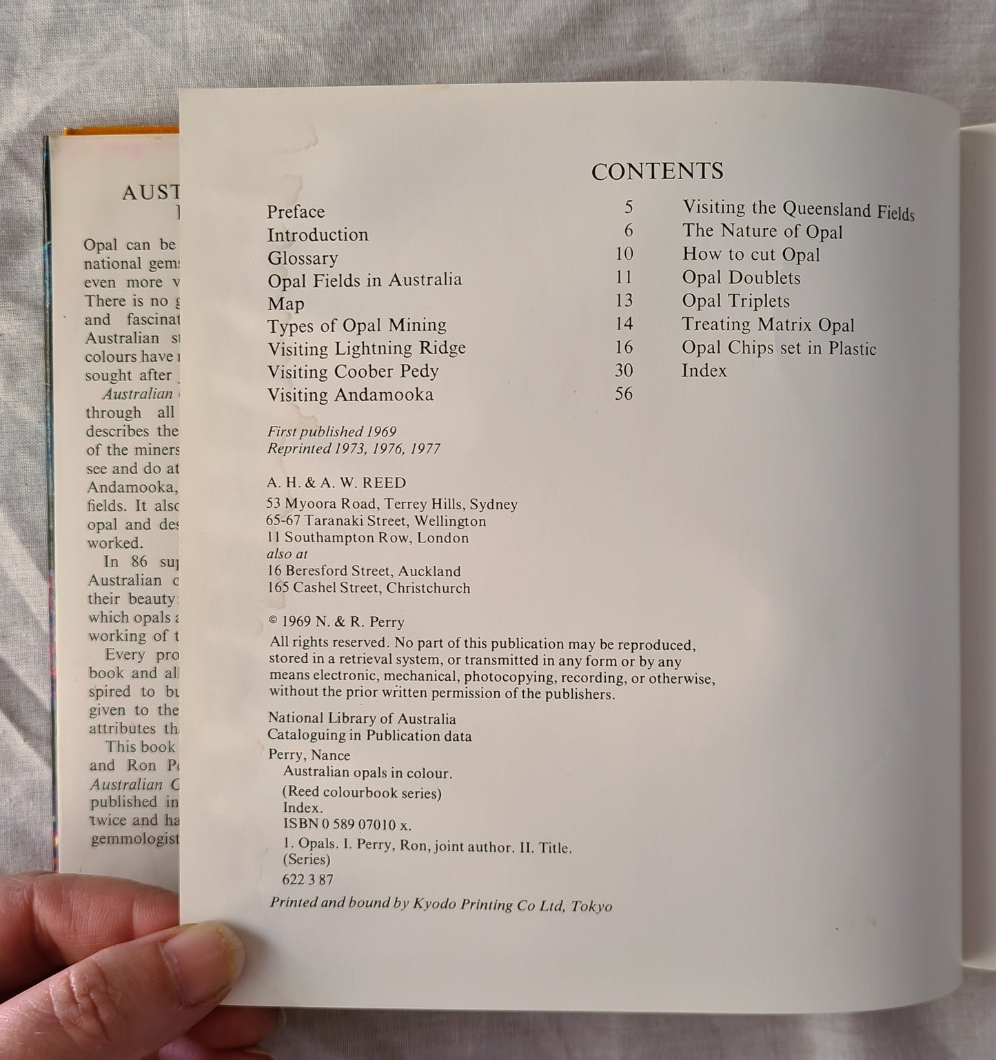 In 86 superb colour plates it displays Australian opals and opal jewellery in all their beauty: gives glimpses of the areas in which opals are mined and shows the lapidary working of these precious gems.”