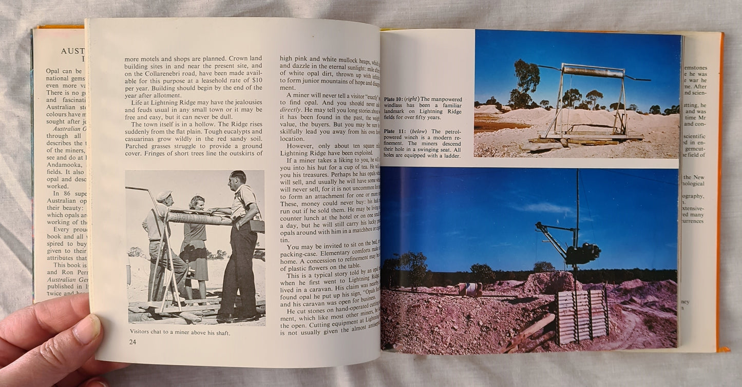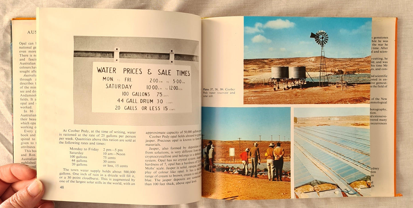 “Australian Opals in Colour takes the reader through all the Australian opal fields, describes the types of opal mining, the lives of the miners, and tells what the visitor may see and do at Lightening Ridge, Coober Pedy, Andamooka, and on the Queensland opal fields. It covers the scientific nature of opal and describes how the gem is cut and worked.