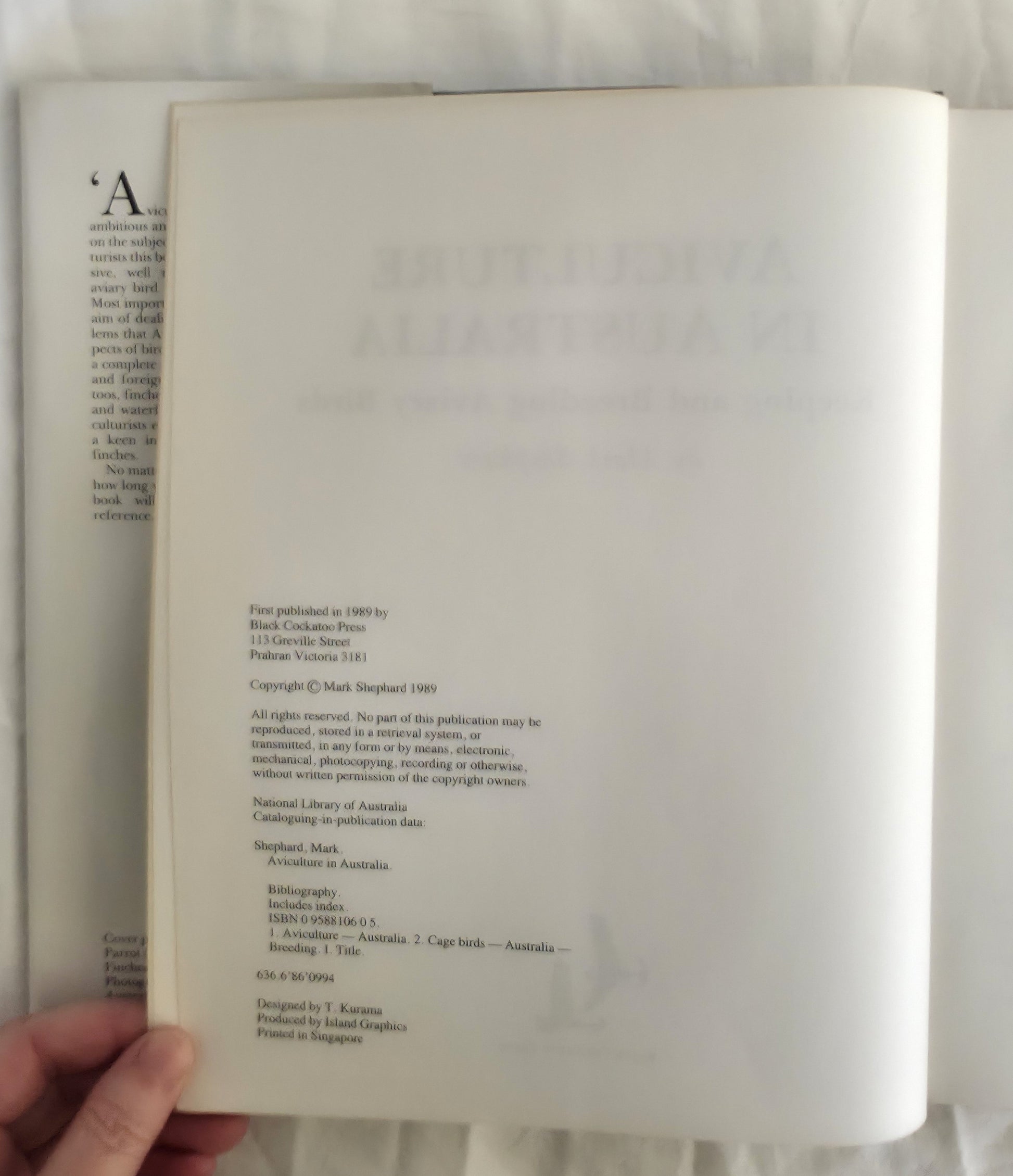 “Aviculture in Australia is the most ambitious and important book ever published on the subject. Written for all classes of aviculturists this book is by far the most comprehensive, well reached and well produced aviary bird book yet published in Australia. Most importantly it is written with the specific aim of dealing with the conditions and problems that Australian aviculturists face. All aspects of bird keeping are covered and there is a complete species account of both Australian and foreign birds, including parrots, cockatoos, finches, softbills, quail, doves, pheasants and waterfowl.”