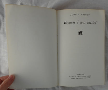 Because I Was Invited by Judith Wright