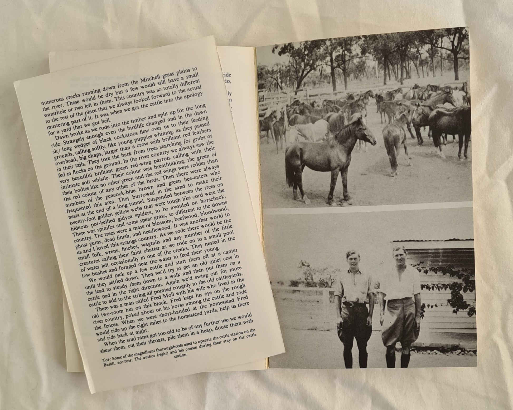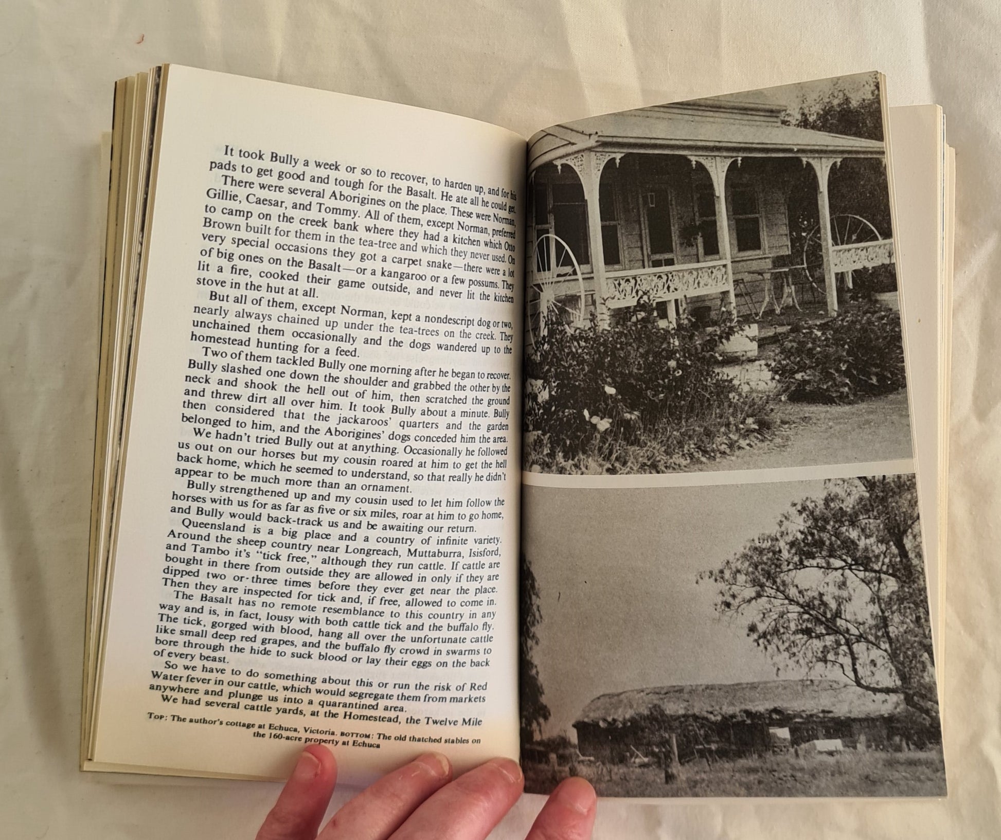 “This racy narrative recalls life in the Victorian countryside and on cattle and sheep stations in Queensland in the first half of this century. It begins with a sparkling account of the author’s county childhood then goes on to relate his life as a jackaroo in the “fascinating and terrifying” country which, he learnt to love. IT was a life of men and horses, cattle, sheep, and dogs, in the great wild land with all its challenges and rewards.”