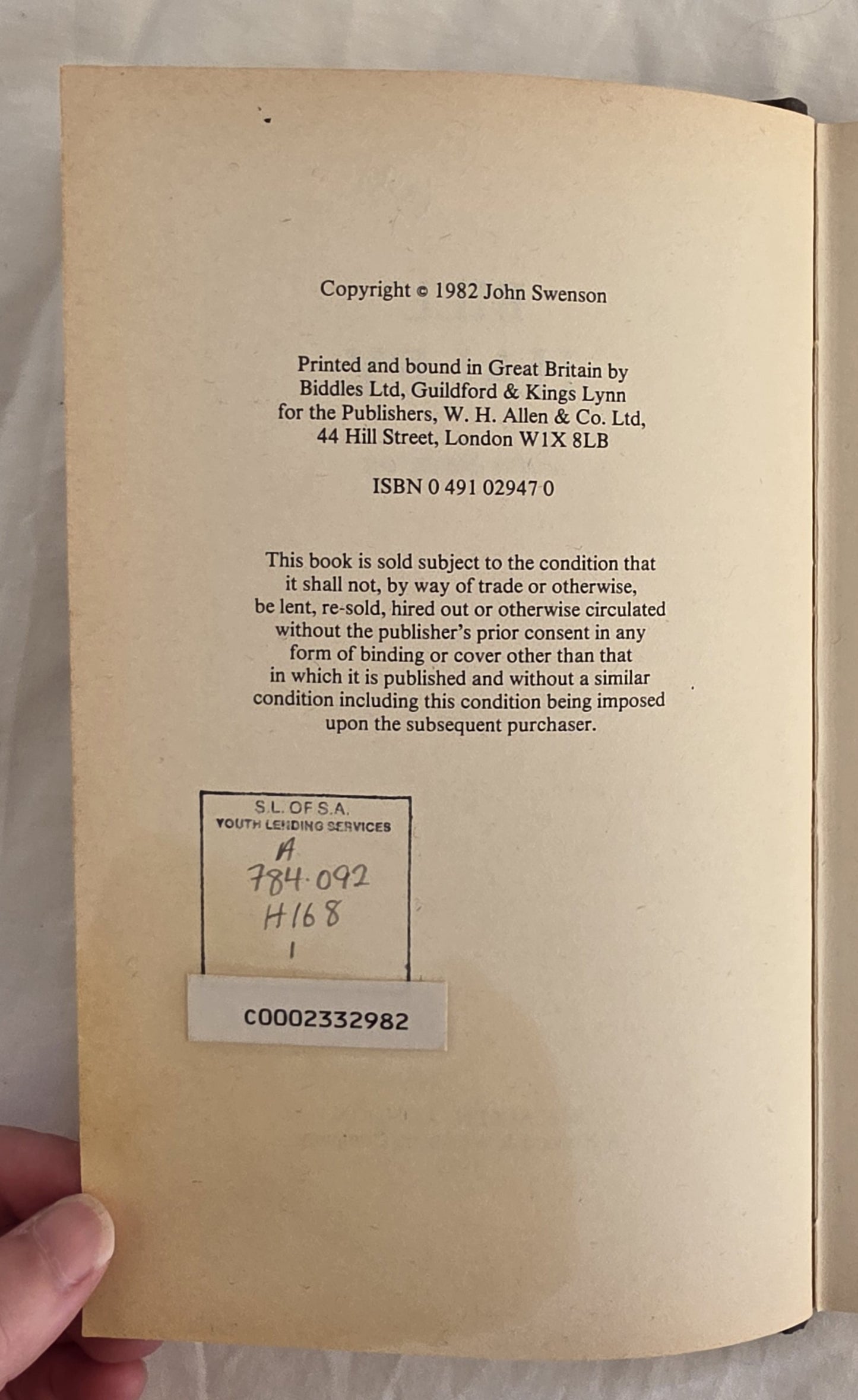W. H. Allen & Co., 1982, [First Edition], ISBN 0491029470, black and white photographic plates, hardcover