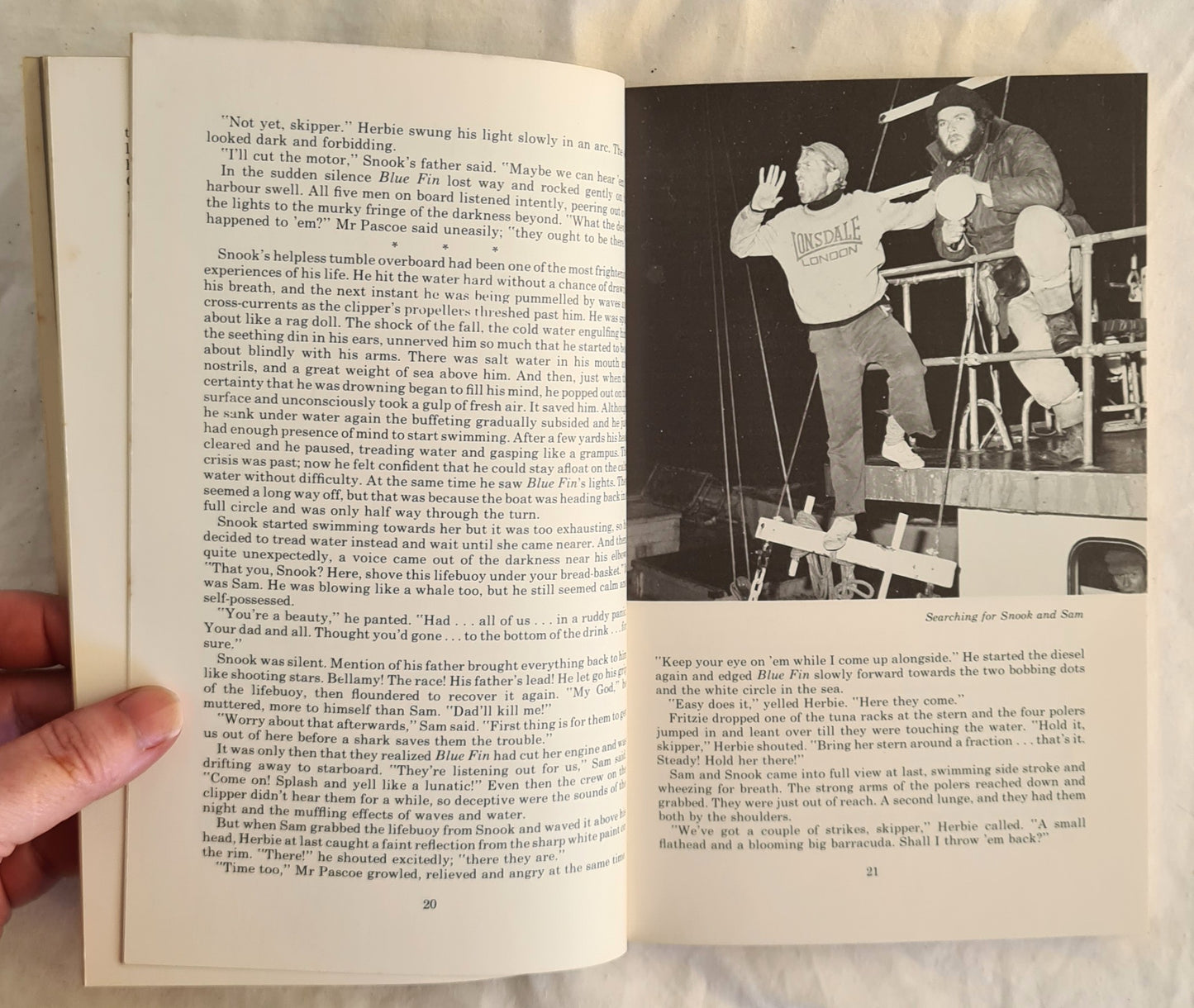 “Twelve-year-old Steve Pascoe is nicknamed 'Snook' by everyone in Port Lincoln. He's thin and long-faced, like the fish he's named after. At school he's no good at sport and, at home, his father scorns him. Snook joins his father and fellow crewmen on a tuna-fishing expedition, when disaster strikes. It is up to Snook to save himself and his father from a desperate situation.”