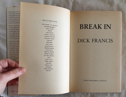 Break in is about family relationships, about love, hatred and obsession; it is about the use and abuse of power by the gutter press, who will go to any lengths to get the information they seek and then use that information in any way they choose; and throughout it is about the day-to-day life of a top-flight horseman, for whom race-riding is the most demanding, the most rewarding love of all."