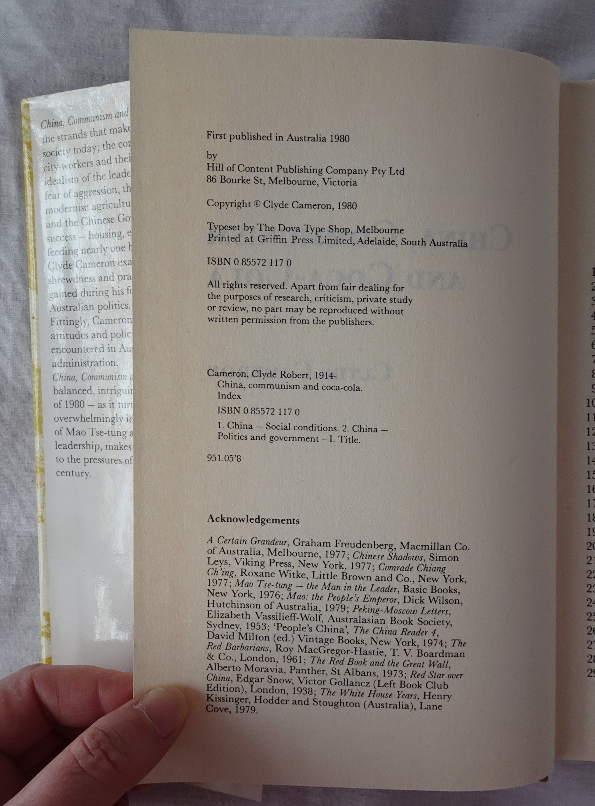“China, Communism and Coca-Cola traces the strands that make up Chinese society today; the communes, factories, city workers and their unions, the idealism of the leaders, China’s growing fear of aggression, the drive to modernise agriculture and industry, and the Chinese Government’s greatest success – housing, educating and feeding nearly one billion people. Clyde Cameron examines China with shrewdness and practical wisdom gained during his forty years in Australian politics.