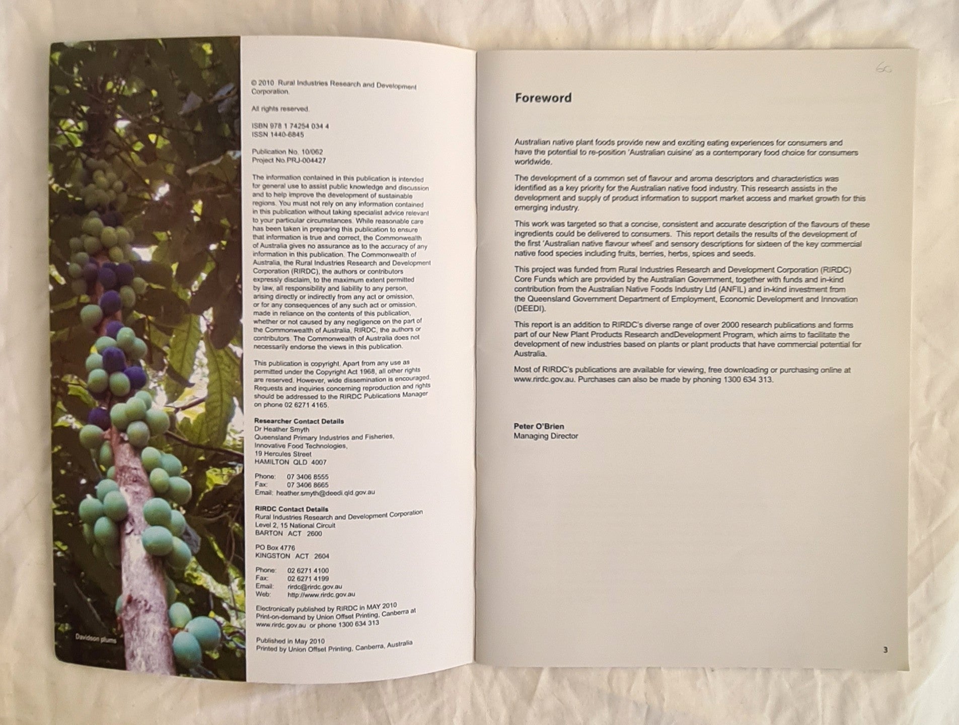 This publication presents a common set of flavour and aroma descriptors and characteristics which was identified as a key priority for the Australian native food industry.