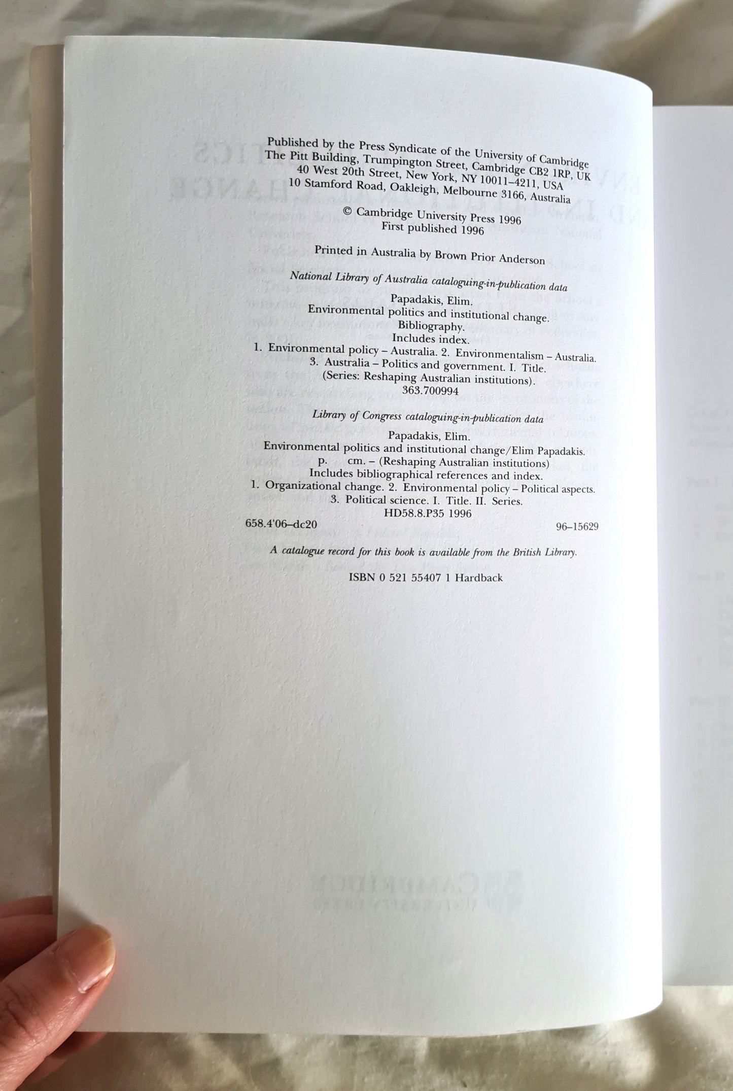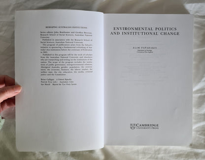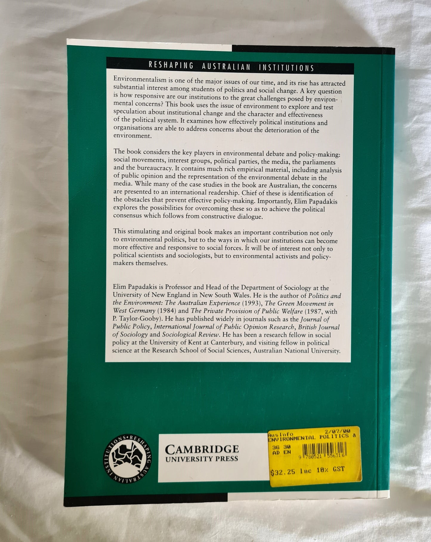 “This book considers the key players in environmental debate and policy-making: social movements, interest groups, political parties, the media, the parliaments and the bureaucracy. It contains much rich empirical material, including analysis of public opinion and the representation of the environmental debate in the media. While many of the case studies in the book are Australian, the concerns are presented to an international readership. Chief of these is identification of the obstacles that prevent effective policy-making. Importantly, Elim Papadakis explores the possibilities for overcoming these so as to achieve the political consensus which follows from constructive dialogue.”