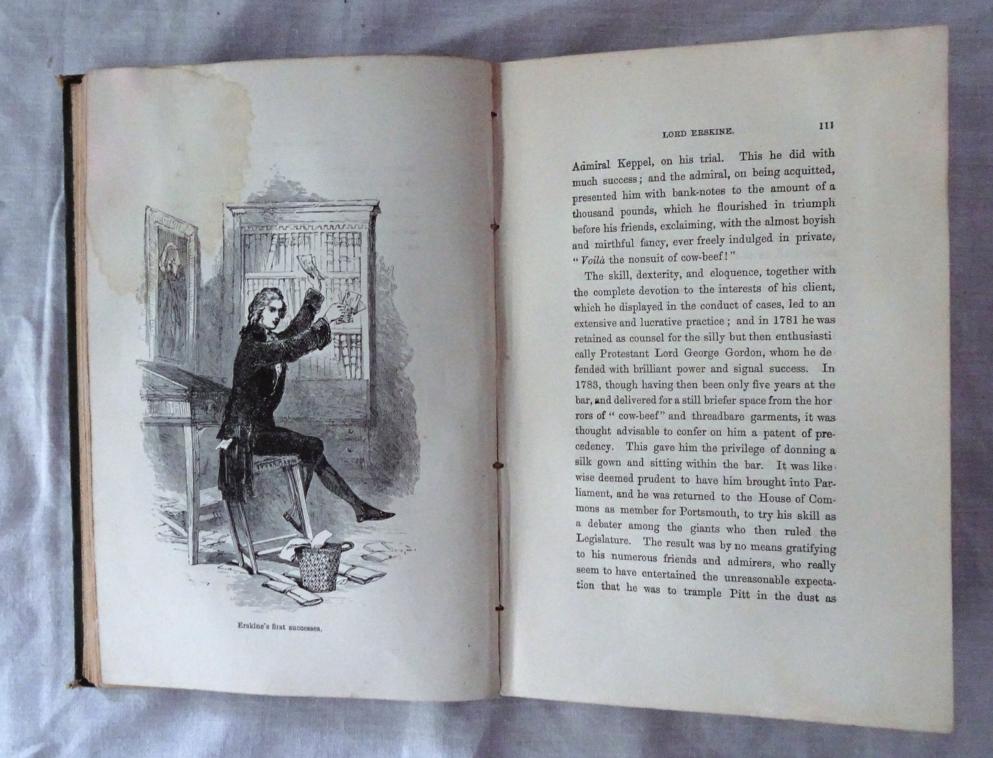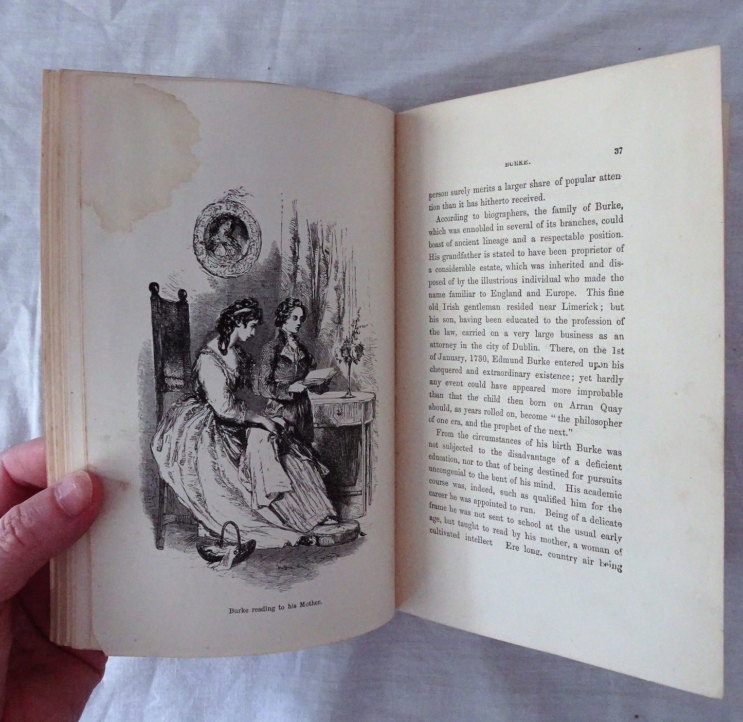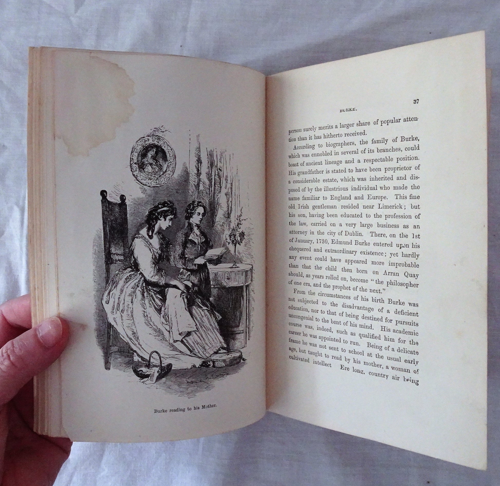 “Illustrated short biographies of famous men - men of action (Washington, Burke, Necker, Pitt, Lord Erskine, Lord Collingwood, Lord Teignmouth); men of letters (Dean Milner, David Hume, Southey, Moore); artists (Sir Joshua Reynolds, Sir Francis Chantrey, Sir Christopher Wren); and men of science (Dr. William Hunter, Black, Brindley, Watt, and Adam Smith)..”