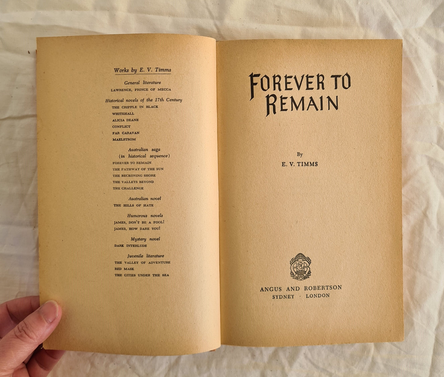 “High adventure is the keynote and love the theme of this story of a fateful journey to Western Australia in 1831… The Swan River Settlement was in its infancy when the London Lass set sail with its cargo of emigrants to this strange new world. Proud or humble, adventurous or ambitious, those who rubbed shoulders in this perilous journey were so diverse that their passions and frustrations were bound to end in more than one human tragedy. Eleanor Armitage with her blonde loveliness; Simon Lee Challinor, aristocrat turned rover of the seven seas; the tavern girl. Penelope, strong-willed and hot-blooded, exquisite in her dark grace; Martha Gubby of the generous heart and Cockney wit; Squint-eye Lush, the captain, whose suave geniality hides the ruthlessness of a cut-throat; it is a colourful gallery, implicit with the drama of conflicting personalities – some of whom are destined “forever to remain” in the new.”