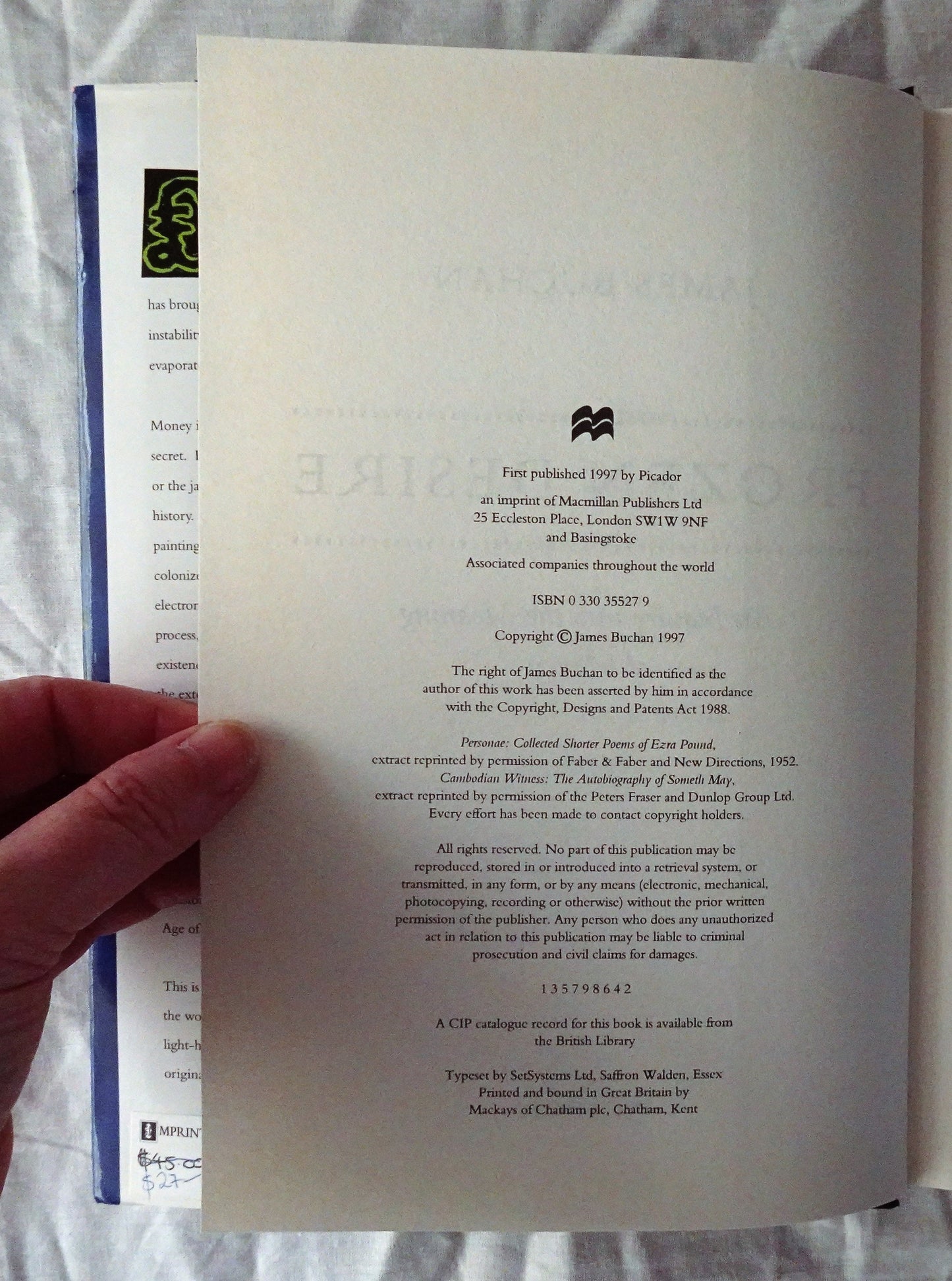 “Money now so pervades the world that few people question it, but James Buchan agues in this persuasive book, the acceptance of money has brought the world to a condition of unprecedented instability. For there is nothing to money but faith, which can evaporate in an instant and has done so repeatedly in history.