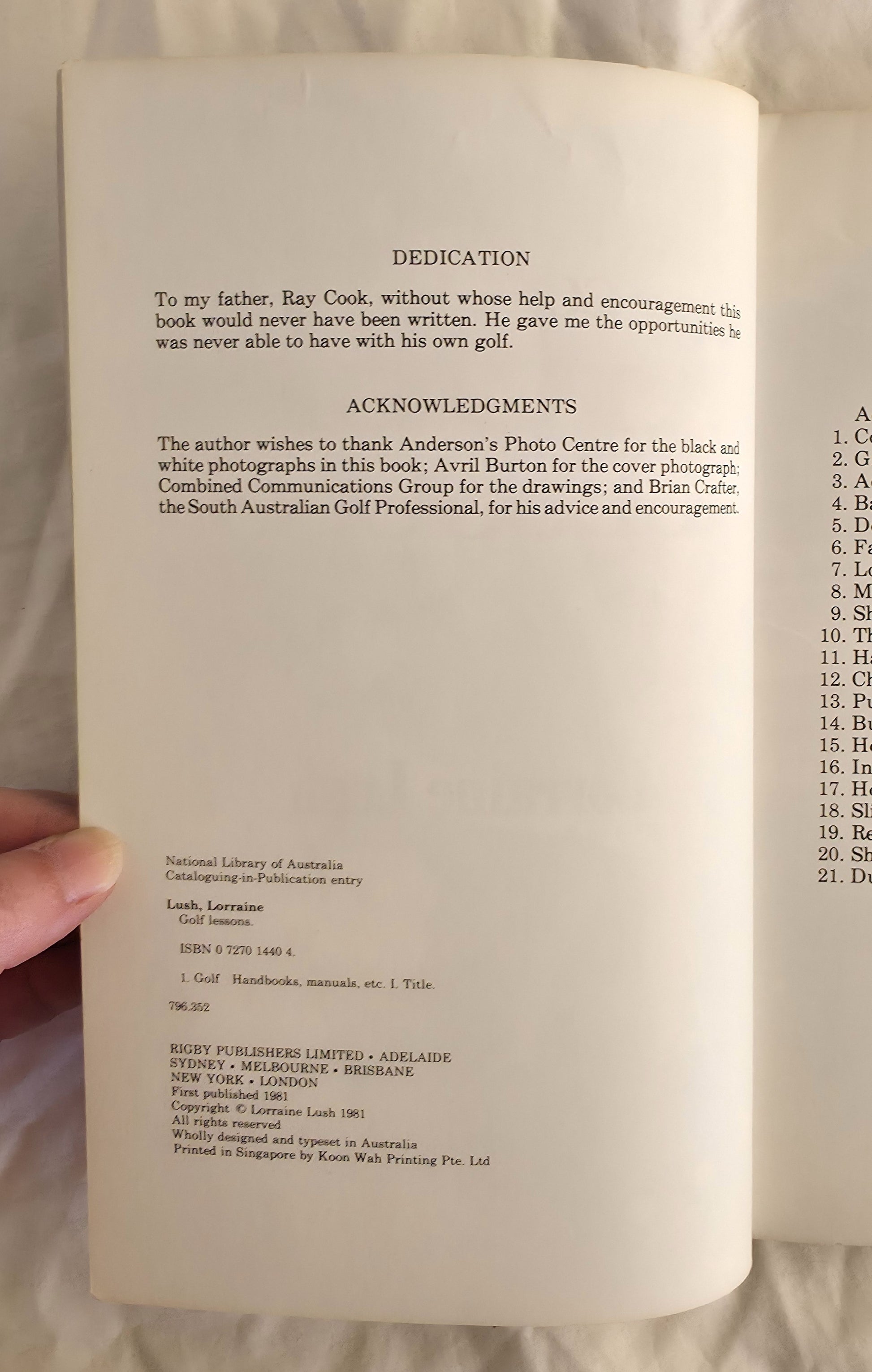 “Golf Lessons is written by a championship golfer and coach to help both the beginner, and the experienced golfer improve their game. It covers all aspects of golf from course etiquette to the correct grip, address, swing, and use of all the clubs. It explains how to execute correctly all the shots from fairway woods to putts and describes the best way to play trouble shots such as bunkers, uneven lies, and the rough. People new to the game often say that they only want ‘to have a bit of fun.’ But once ‘bitten’ they soon wish to improve and lower their score and handicap.”