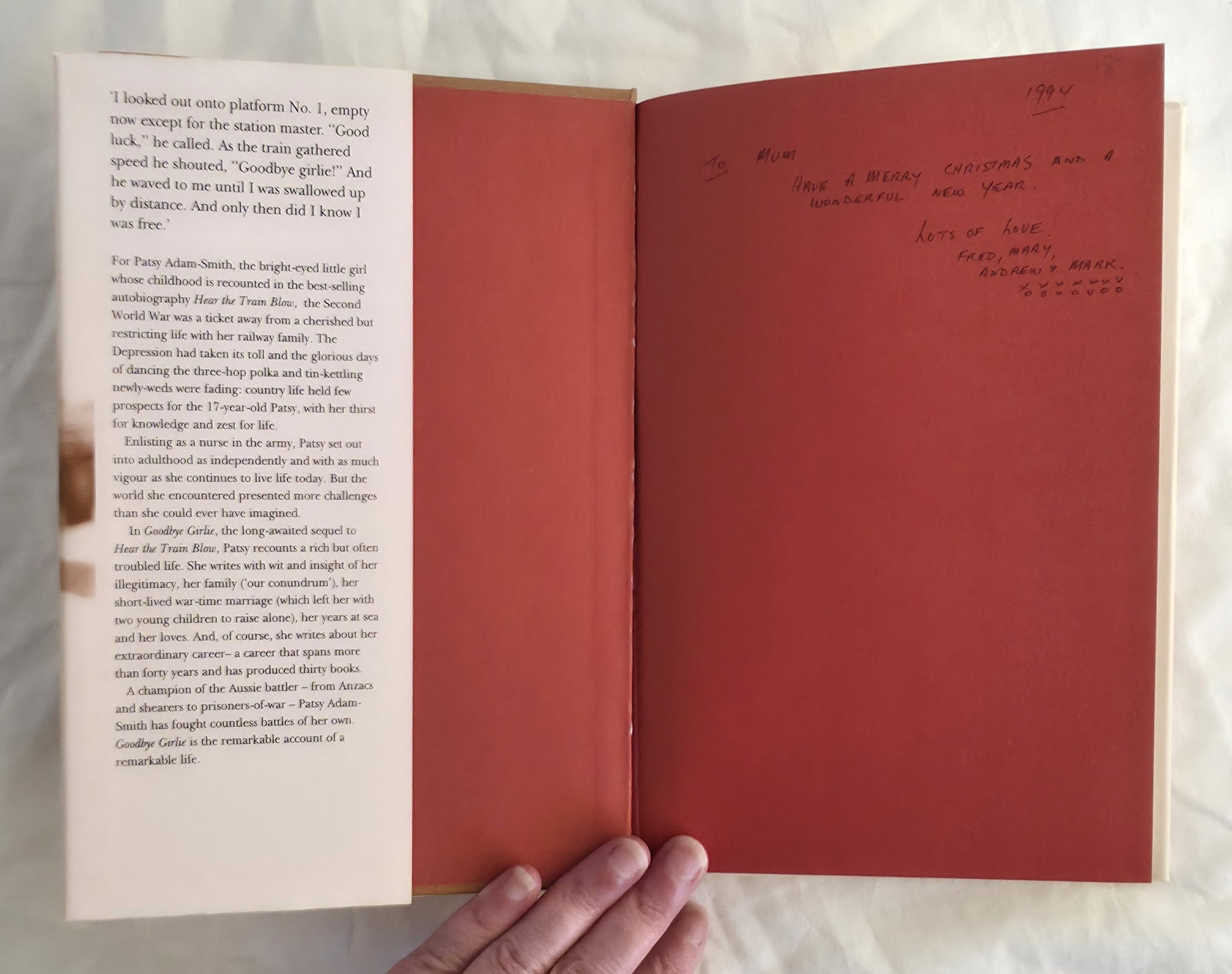 “For Patsy Adam-Smith, the bright-eyed little girl whose childhood is recounted in the best-selling autobiography Hear the Train Blow, the Second World War was a ticket away from a cherished but restricting life with her railway family. The Depression had taken its toll and the glorious days of dancing the three-hop polka and tin-kettling newly-weds were fading: country life held few prospects for the 17-year-old Patsy, with her thirst for knowledge and zest for life.