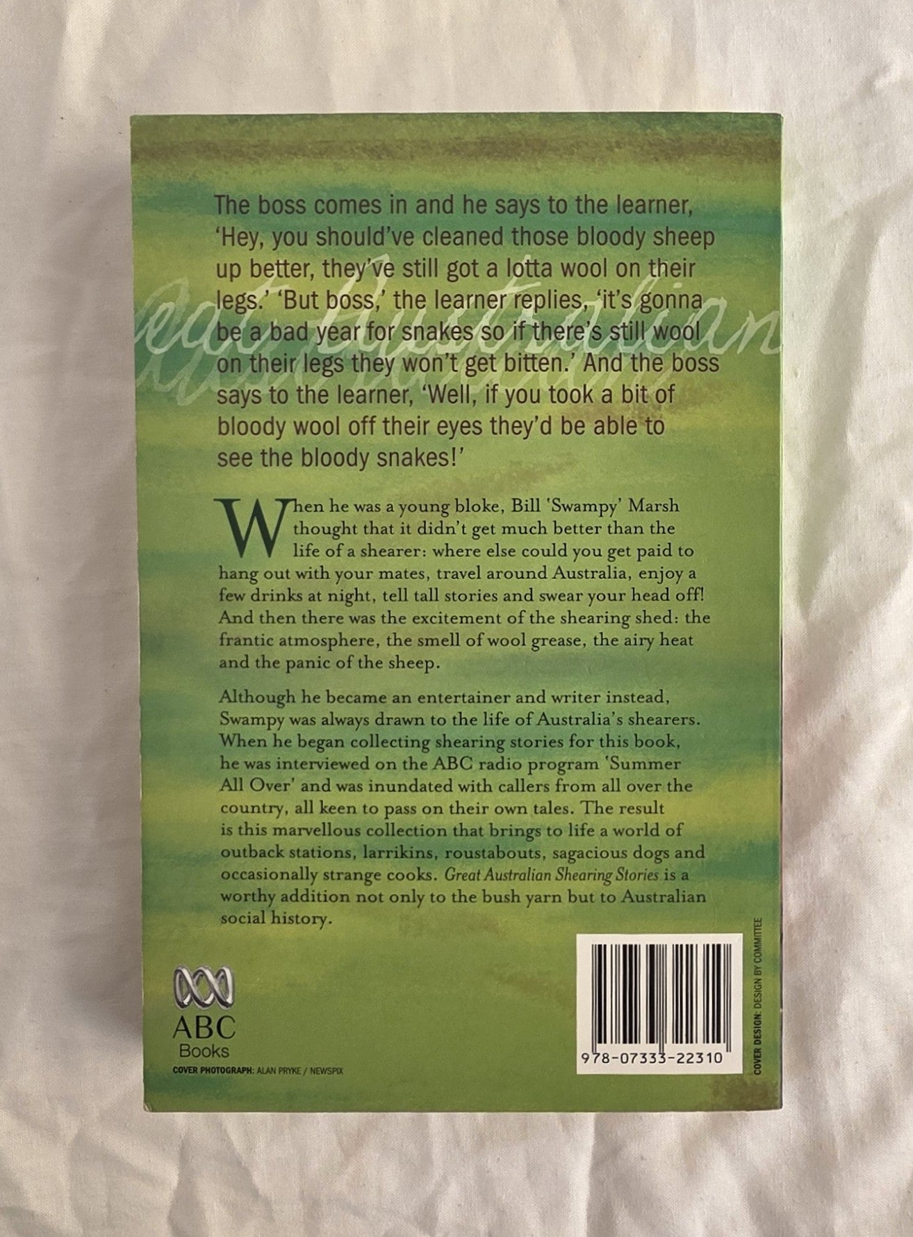 Although he became an entertainer and writer instead, Swampy was always drawn to the life of Australia’s shearers. When he began collecting shearing stories for this book, he was interviewed on the ABC radio program ‘Summer All Over’ and was inundated with callers from all over the country, all keen to pass on their own tales.”
