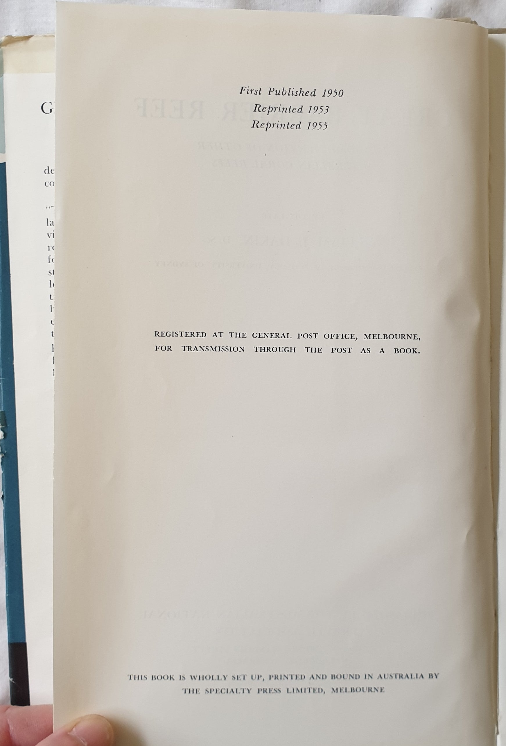 “This story concerns the wonder and beauty of the greatest coral region of the seven seas. As the author so aptly writes, “The words ‘coral’ and ‘coral islands’ have generally called up visions of romance and one can remember how they not only formed the background of many stories of boyhood, but made at least one best-seller of recent times. To scientists of the last hundred years they have, however, been magnets of great attractive power… They have provided the most fascinating problems for the marine biologist.” For the late William J. Dakin, D.Sc., Emeritus Professor of Zoology, University of Sydney, the amazing Great Barrier Reef region, the scattered green atolls of the tropic seas and other coral regions, such as the Abrolhos Islands of the West, constituted a lure and a life-long delight. His life-work concluded with the writing of this volume – a brilliant effort to make known, to every visitor and to those who cannot travel, the unique geographical feature of the Australian continent.”