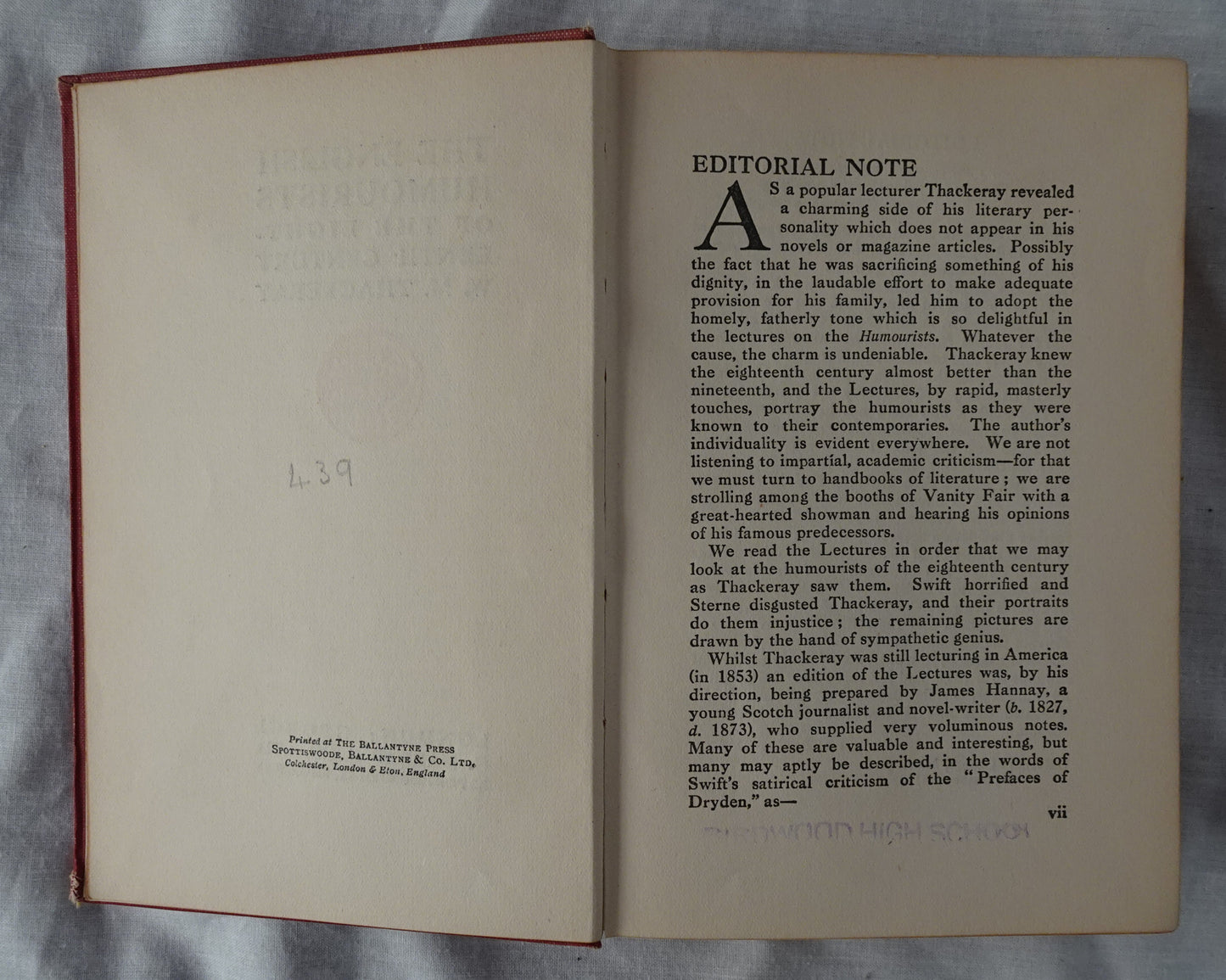 “As a popular lecturer Thackeray revealed a charming side of his literary personality which does not appear in his novels or magazine articles. Thackeray knew the eighteenth century almost better than the nineteenth, and Lectures by rapid masterly touches, portray the humourists as they were known to their contemporaries.
