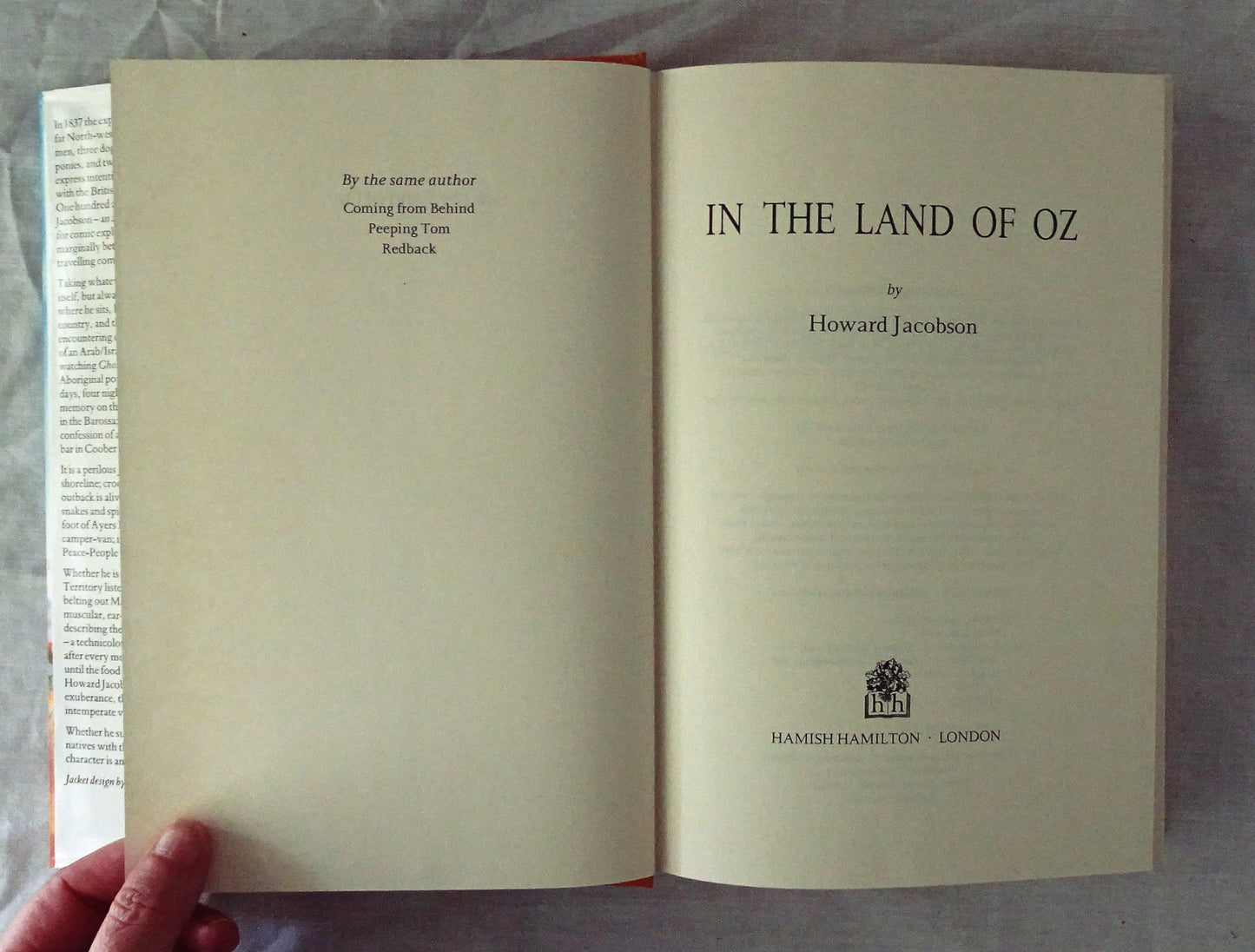 “In 1837 the explorer George Grey landed in the far North-west of Australia, together with five men, three dogs, an undisclosed number of ponies, and two pints of water to go round; his express intention being to familiarize the natives with the British temperament and character. One hundred and fifty years later, Howard Jacobson – an ardent admirer of Grey’s genius for comic exploration – flies into Darwin, marginally better prepared, and with only one travelling companion, to do the same.