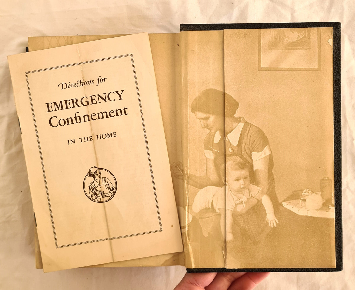 Signs Publishing Company, 1950, [Revised and Enlarged], black and white photographs in text, colour plates, black and white frontispiece, marbled edges, pull-out Emergency Confinement booklet in slip on inside back cover, photographic endpapers, hardcover with leather binding