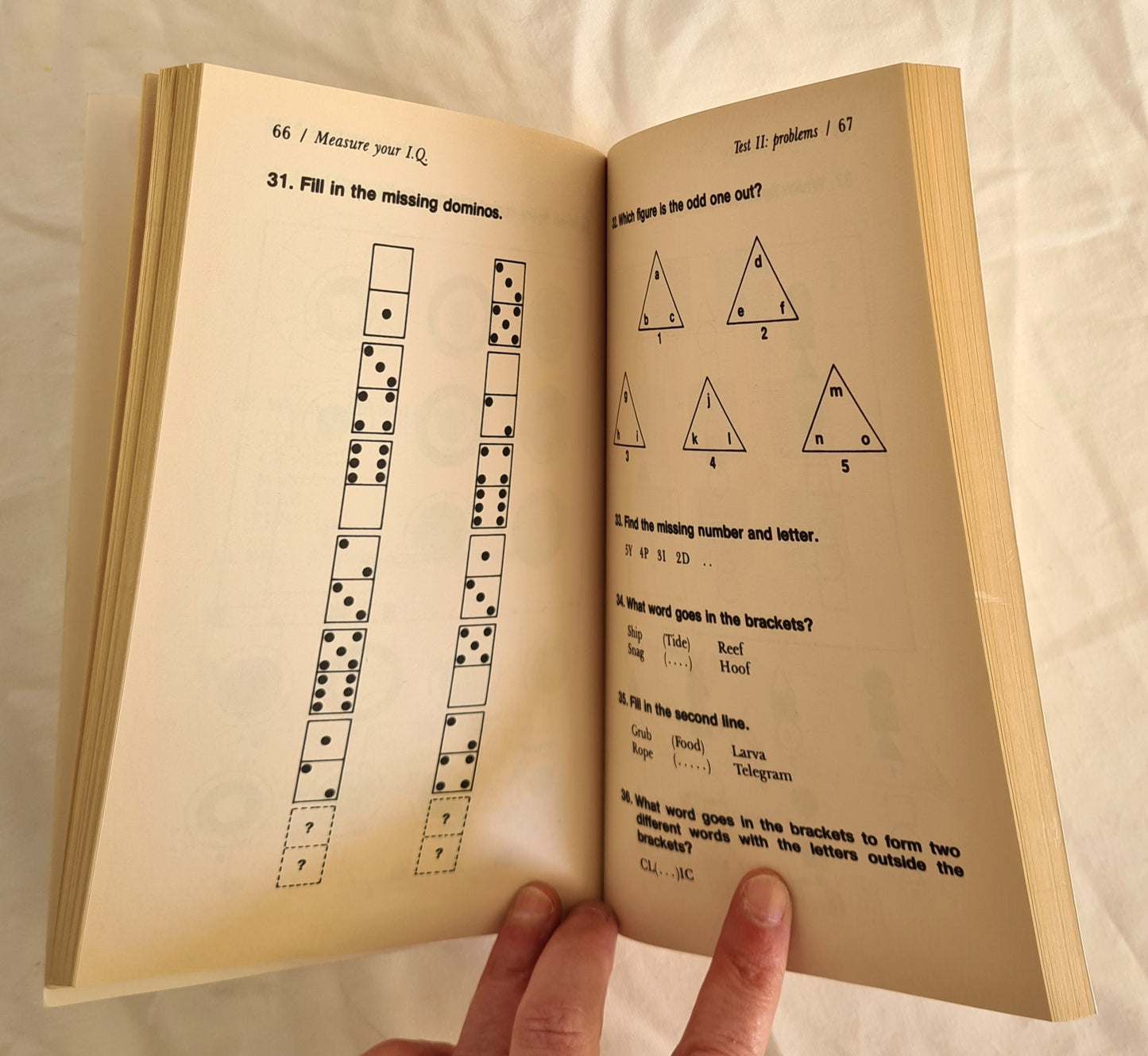 “You want a reliable guide to your intellectual grading. But you don’t want the bother of sitting a formal exam. So, it’s time you tried this helpful new book designed to give you a good general idea in just four half-hour sessions without supervision. These structured puzzles, diagrams and word-teasers are exactly the same as those used to assess doctors or teachers. But to make the test realistic, you must keep to the time-limit, and books and calculators are banned!”