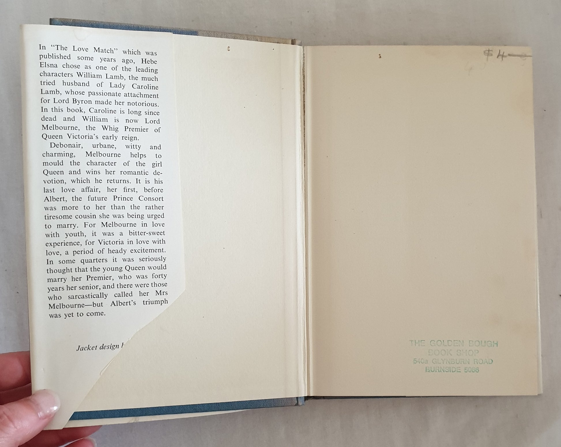 "In "The Love Match" which was published some years ago, Hebe Elsna chose as one of the leading characters William Lamb, the much tried husband of Lady Caroline Lamb, whose passionate attachment for Lord Byron made her notorious.