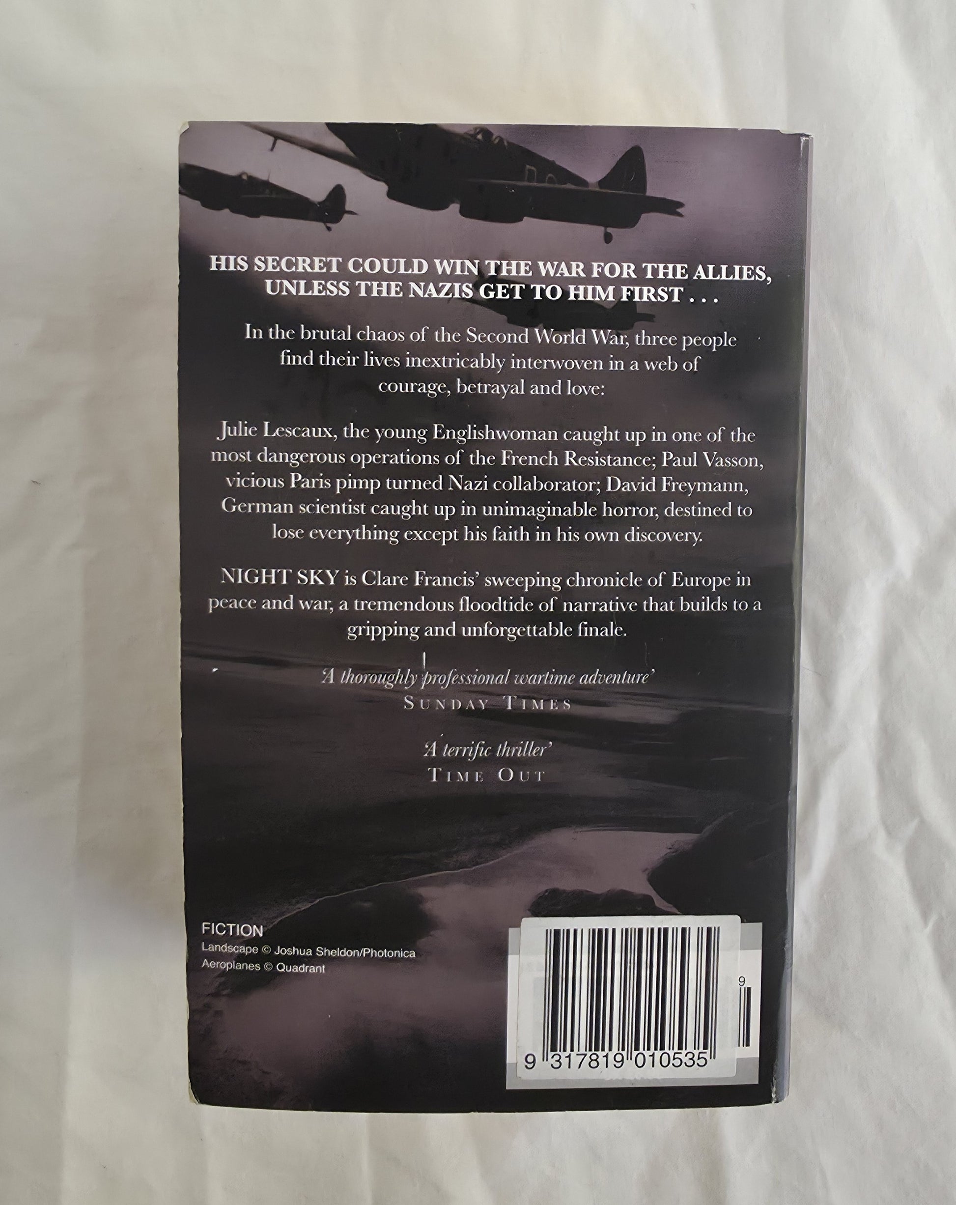 “In the brutal chaos of the Second World War, three people find their lives inextricably interwoven in a web of courage, betrayal and love: Julie Lescaux, the young Englishwoman caught up in one of the most dangerous operations of the French Resistance: Paul Vasson, vicious Paris pimp turned Nazi collaborator; David Freymann, German scientist caught up in unimaginable horror, destined to lose everything except his faith in his own discovery.”