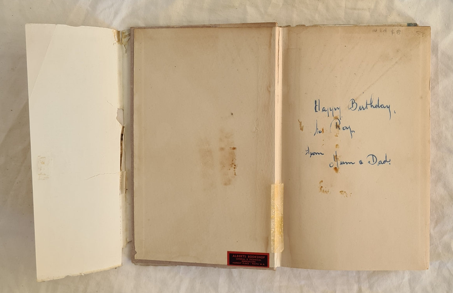 Good Condition, some edge and shelf wear, some rubbing and bumping to edges and corners, some chipping, tearing and discolouration, particularly at top of spine, previous owners t inscription on front endpaper, age toned pages, dustjacket shows some edge and shelf wear with some rubbing, bumping, chipping, creasing, tears and discolouration, small parts missing, tape residue in parts (see photographs)