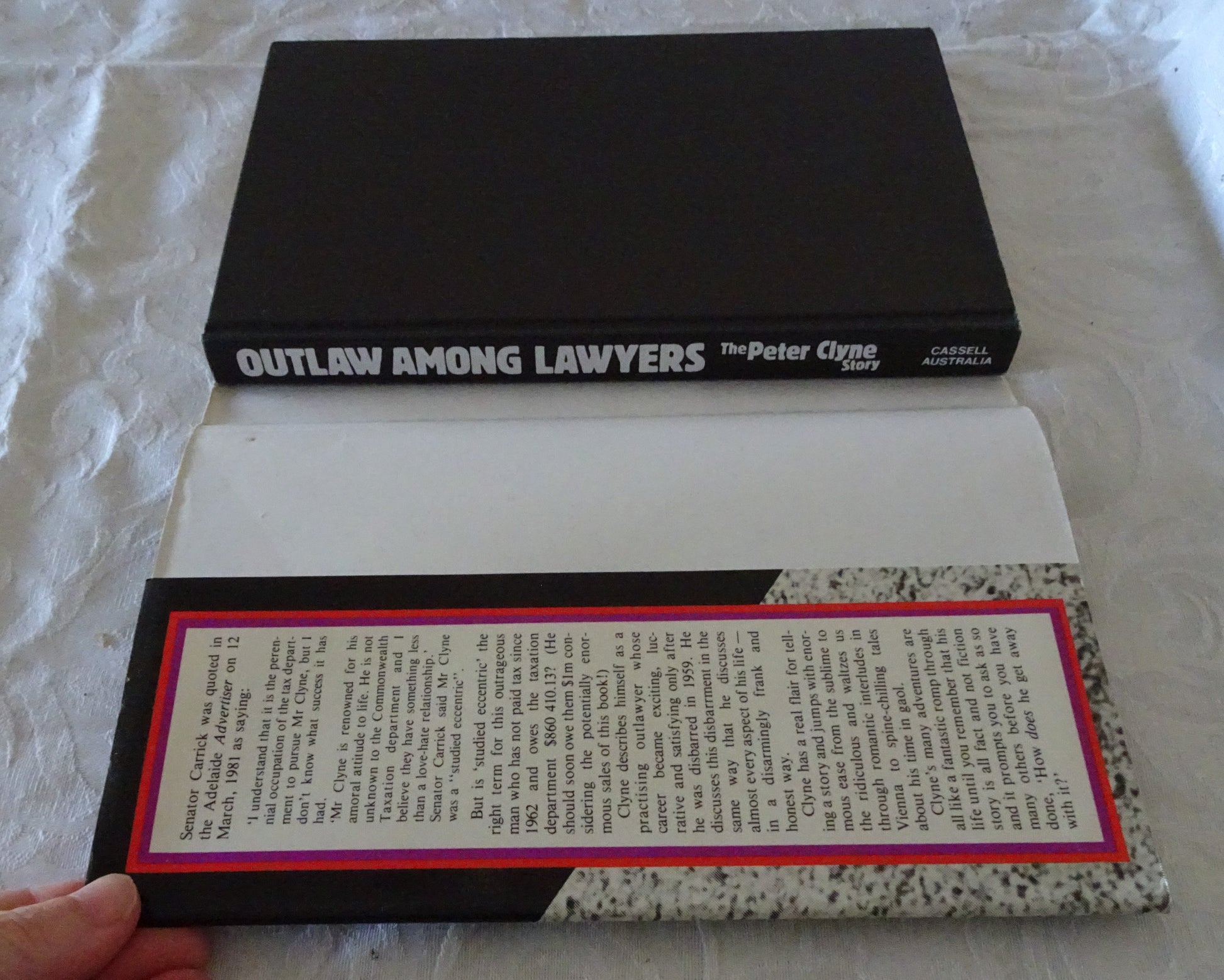 'Clyne describes himself as a practising outlawyer whose career became exciting, lucrative and satisfying only after he was disbarred in 1959. he discusses this disembarrment in the same way that he discusses almost every aspect of his life - in a disarmingly frank and honest way.
