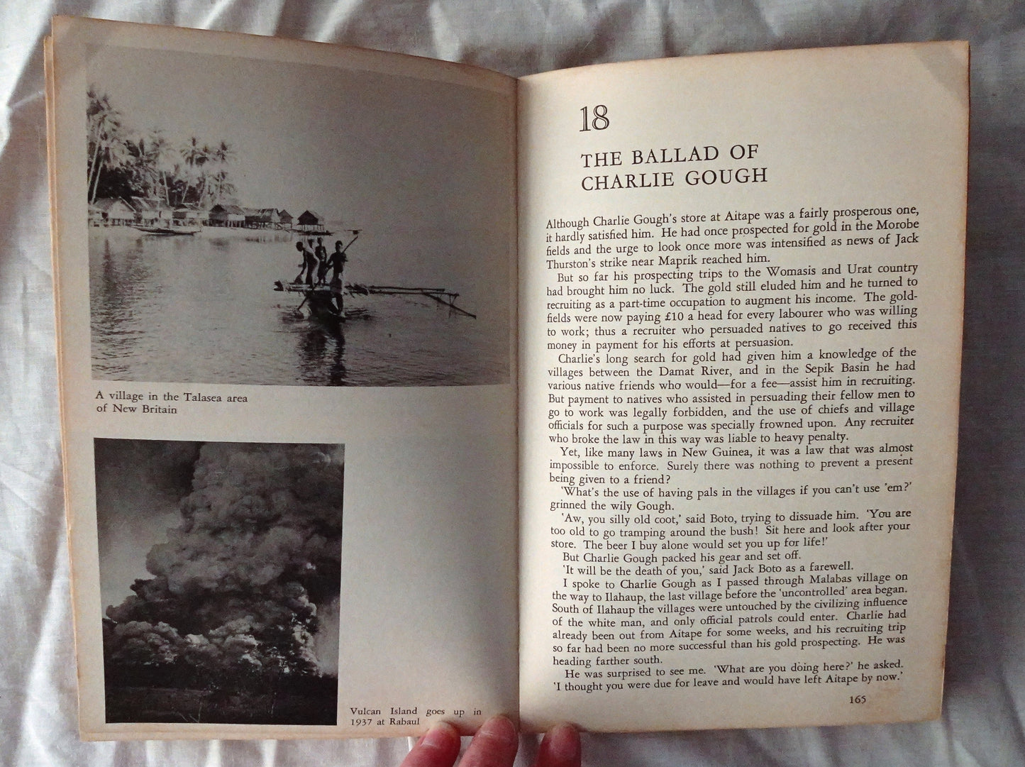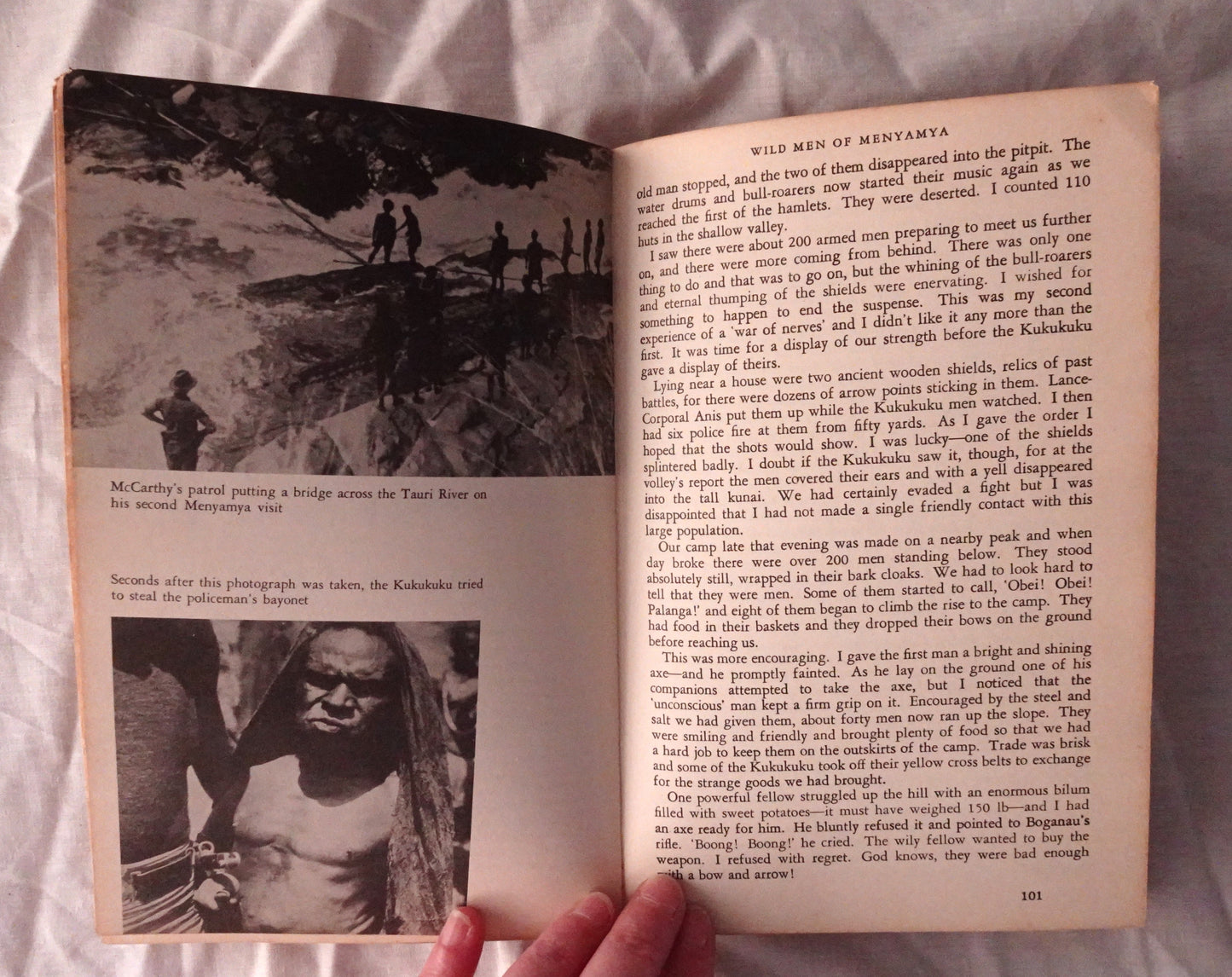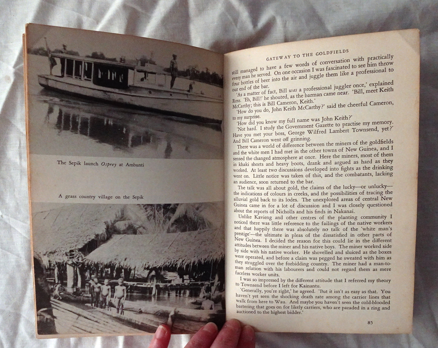 “Here is the story of New Guinea, as seen by a man who has been part of its history for just on forty years. It presents a fascinating vivid unique panorama of life in the big, rugged island to the north of Australia. It tells of the barbaric customs of its more primitive people, of their beliefs in the supernatural world of devils and spirits, and of their methods of sorcery and of waging war. But more than that, it portrays New Guinea’s gradual transition from savagery to civilisation, and the men, black and white, who have been creating the modern New guinea through years of hardship, tragedy, a Pacific war and its aftermath. J.K. McCarthy joined the New guinea Administration as a Patrol Officer in 1927. He led patrol after patrol into unknown parts of the vast island, often being the first white man the inhabitants had seen. He survived arrow attacks on many occasions as he and his men opened up new country and brought peace to violent, treacherous tribes.