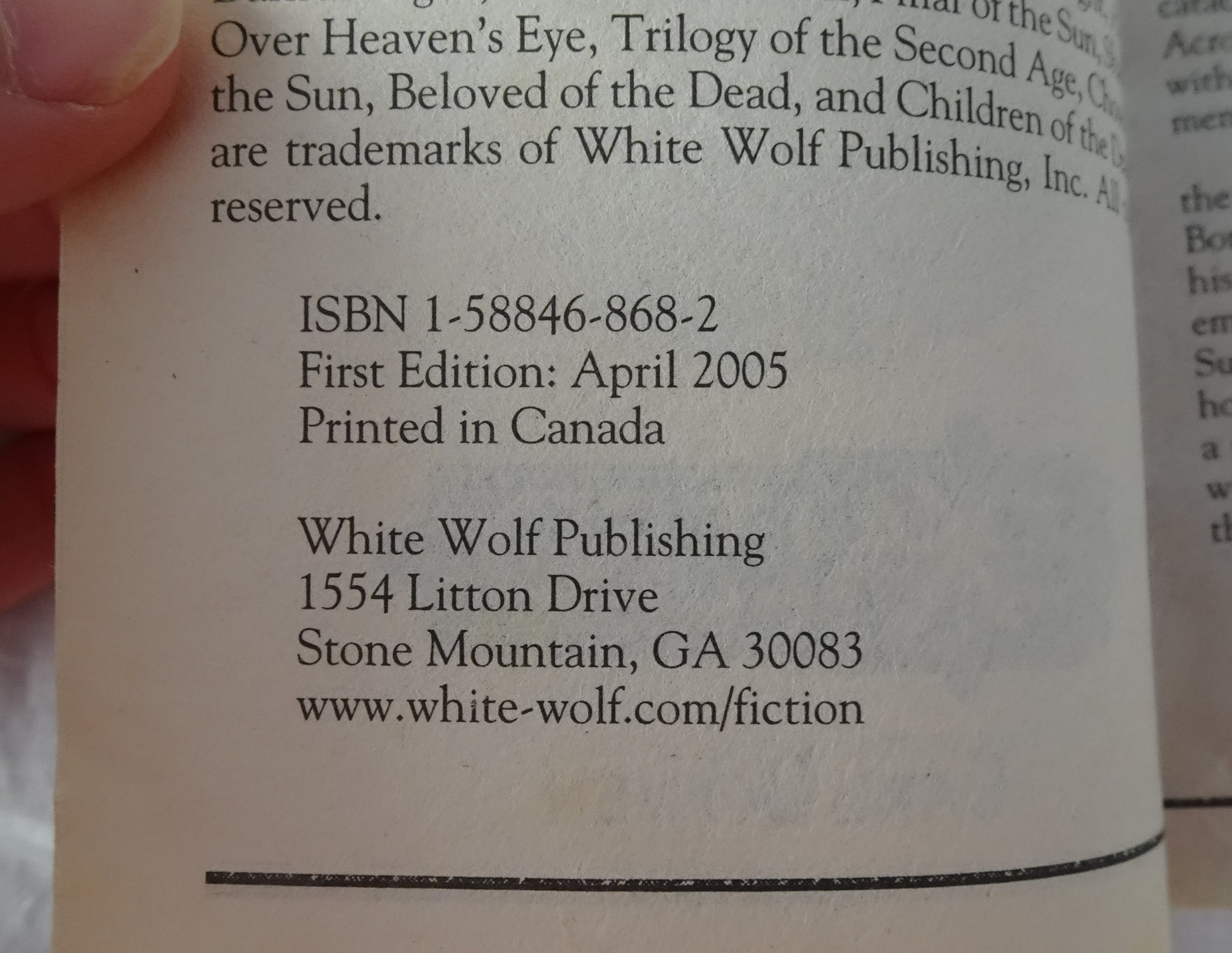 White Wolf Publishing, 2005, [First Edition], ISBN 9781588468680, paperback