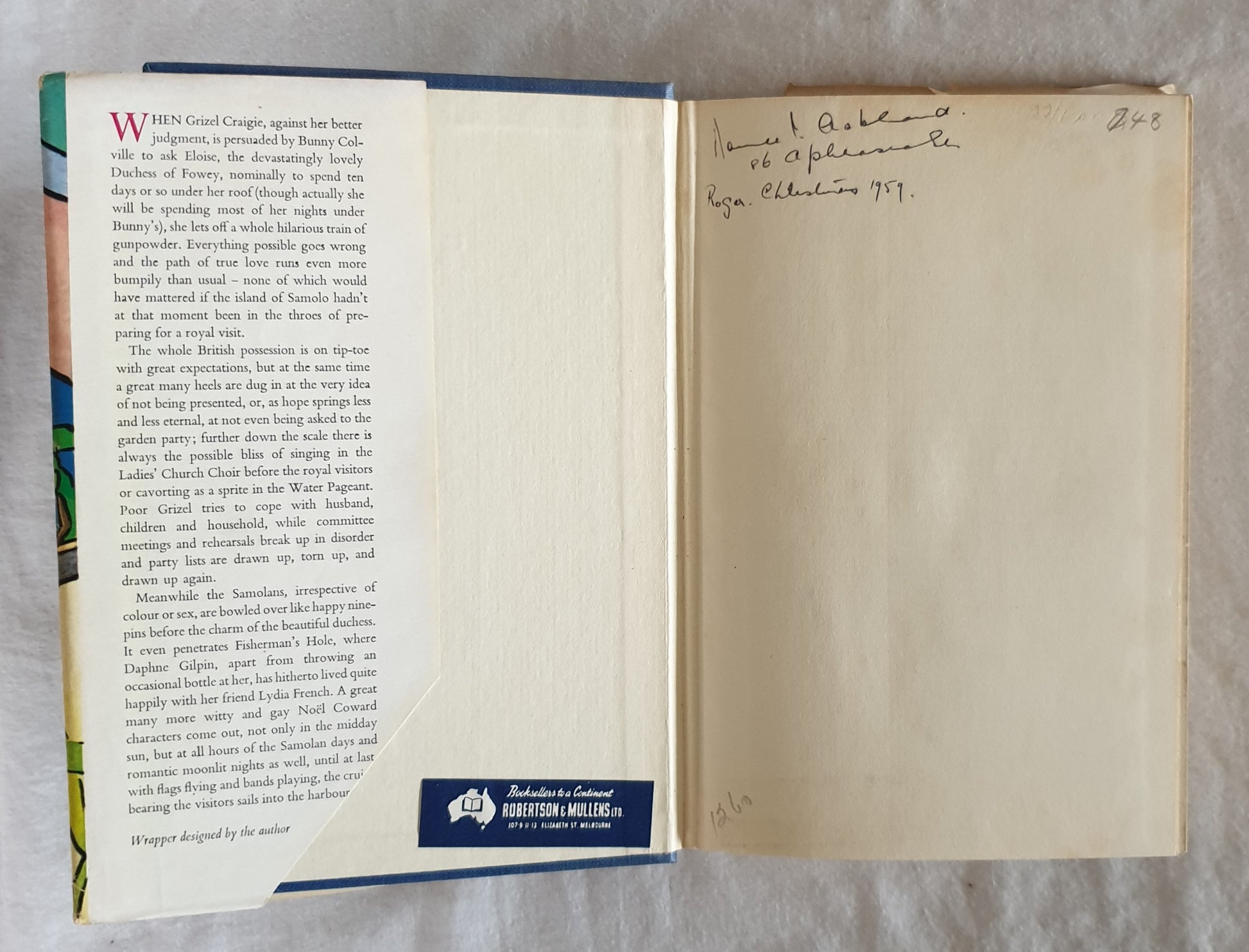 "When Grizel Craigie, against her better judgement is persuaded by Bunny Colville to ask Eloise, the devastatingly lovely Duchess of Fowey, nominally to spend ten days or so under her roof (though actually she will be spending most of her nights under Bunny's), she lets off a whole hilarious train of gunpowder. Everything possible goes wrong and the path of true love runs even more bumpily than usual - none of which would have mattered if the island of Samolo hadn't at that moment been in the throes of preparing for a royal visit."