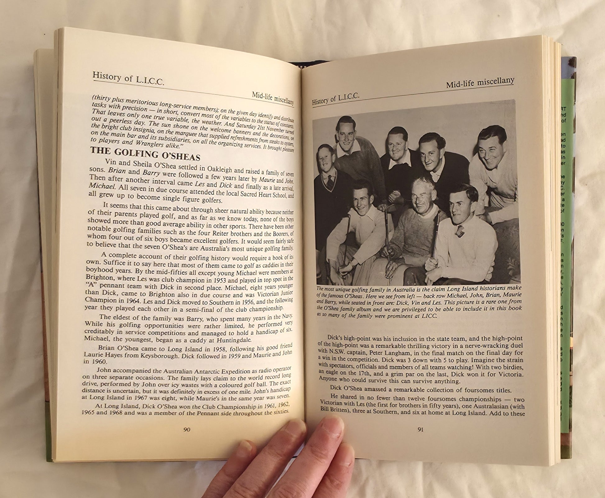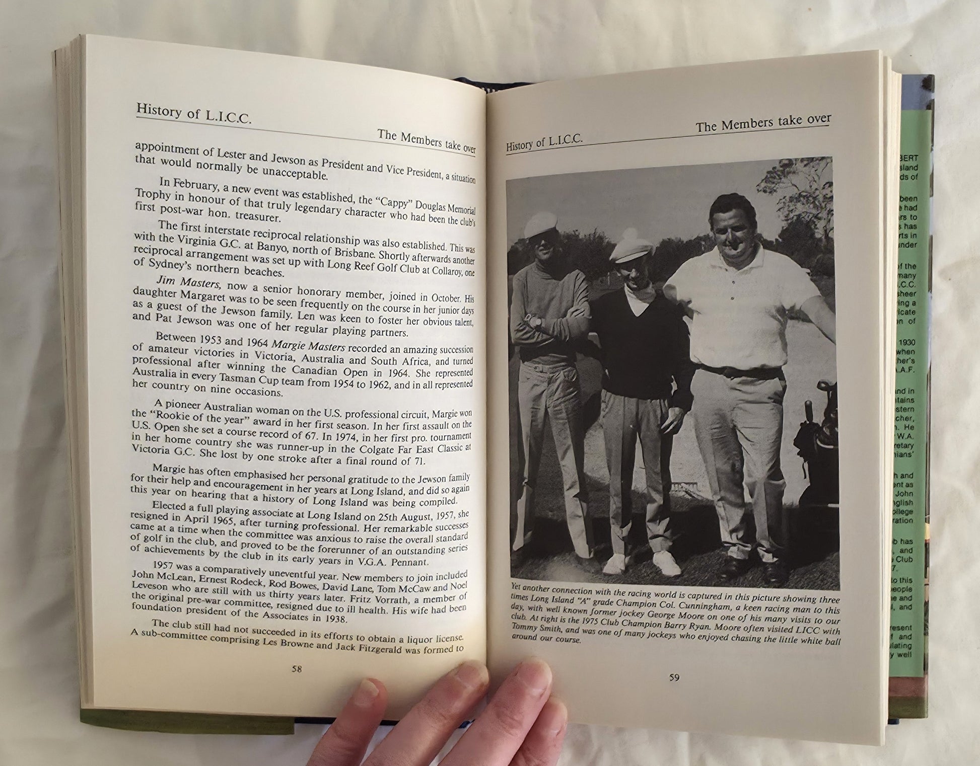 During the first two decades of this century, the property belonged to James Grice. A wealthy merchant, and several times chairman of the V.A.T.C., Grice used the estate for the training and agisting of his own thoroughbreds. In 1925, the newly incorporated Long Island Estates Pty Ltd. Included the former Grice land in its real estate portfolio, and, a few years later, established the fairways and greens of a golf course across and around their racetrack.”