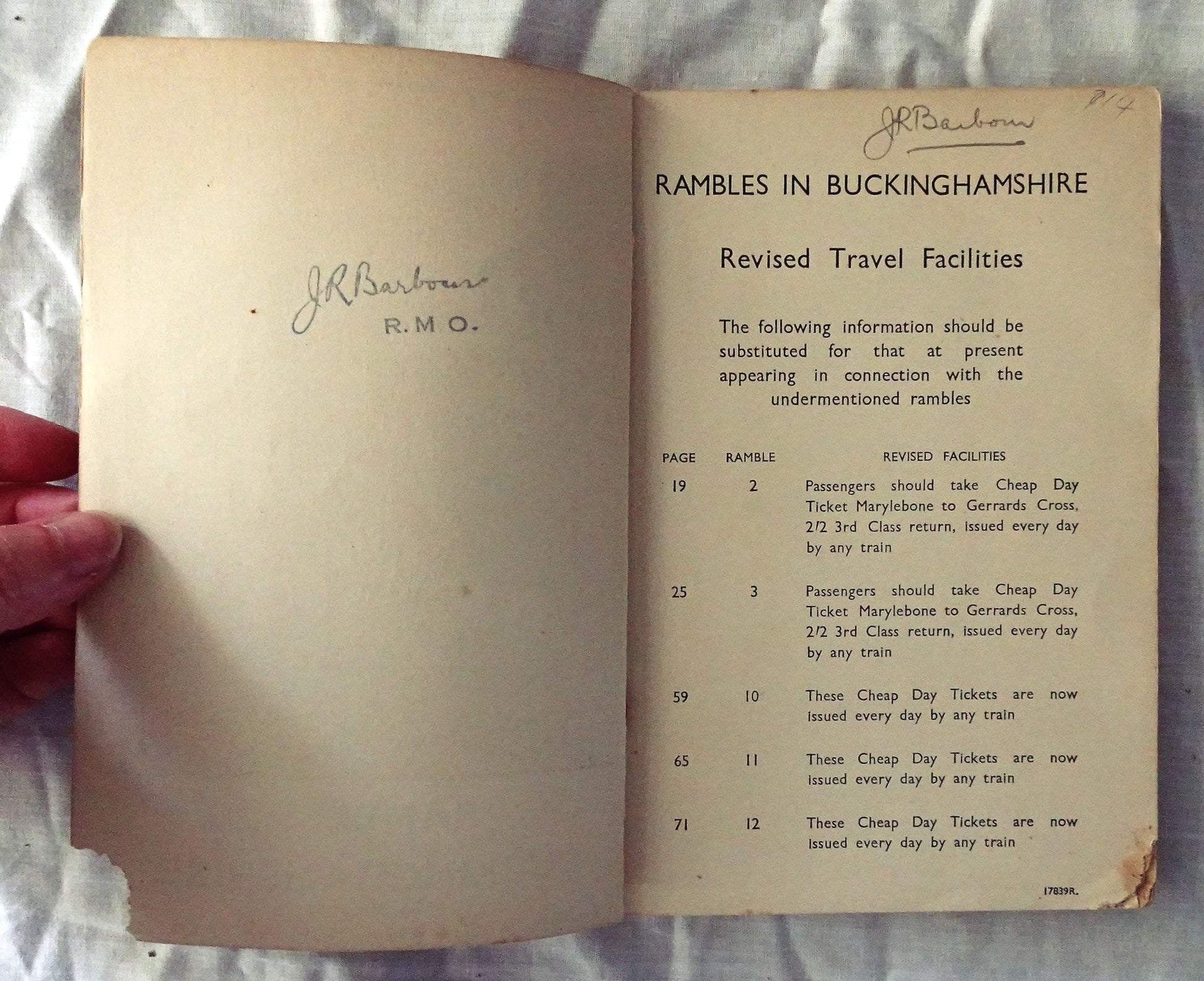 “The rambles in this booklet lead you through country living each side of the G.C. & G.W. Joint Line between Marylebone and Princes Risborough in Buckinghamshire. Before the railway line was opened this rural district was almost inaccessible to walkers. It was then almost exclusively rural, but near the stations it has now become a favourite residential area for those who appreciate the fine scenery of its rolling chalk hills, gorse-clad commons and fine beech woods.”