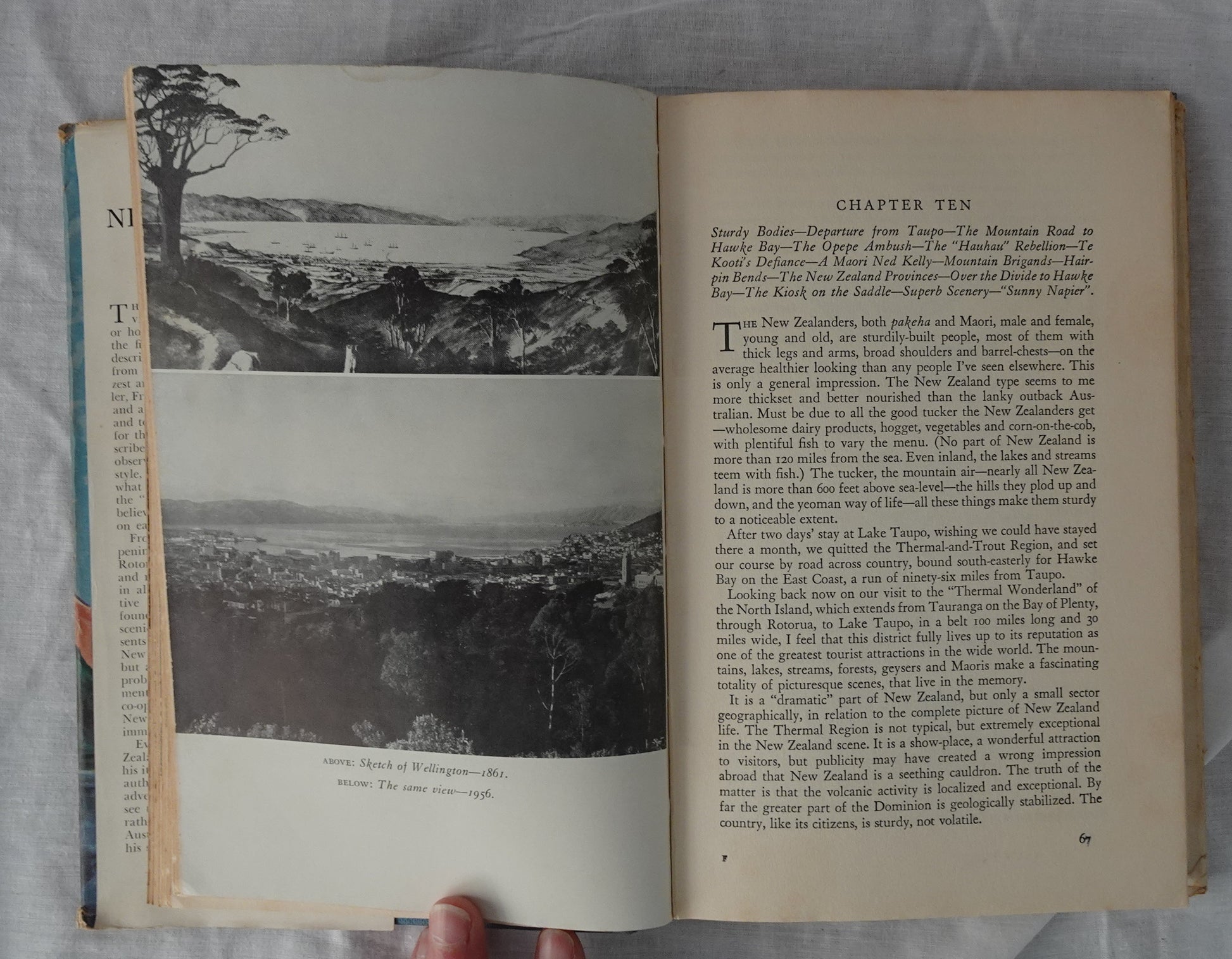 “Thousands of Australians have visited New Zealand on business or holiday trips, but Frank Clune is the first to write a full-length book describing Australia’s sister Dominion from one end to the other. With the zest and experience of a world traveller, Frank Clune visited every province and all the principal cities, boroughs, and tourist resorts, to collect material for this, his forty-fourth book. He describes vividly with his usual careful observation and lively, easy-to-read style, what he saw, what he did, and what he learnt on his wanderings in the “miniature continent”, which he believes to be unlike any other land on earth.”