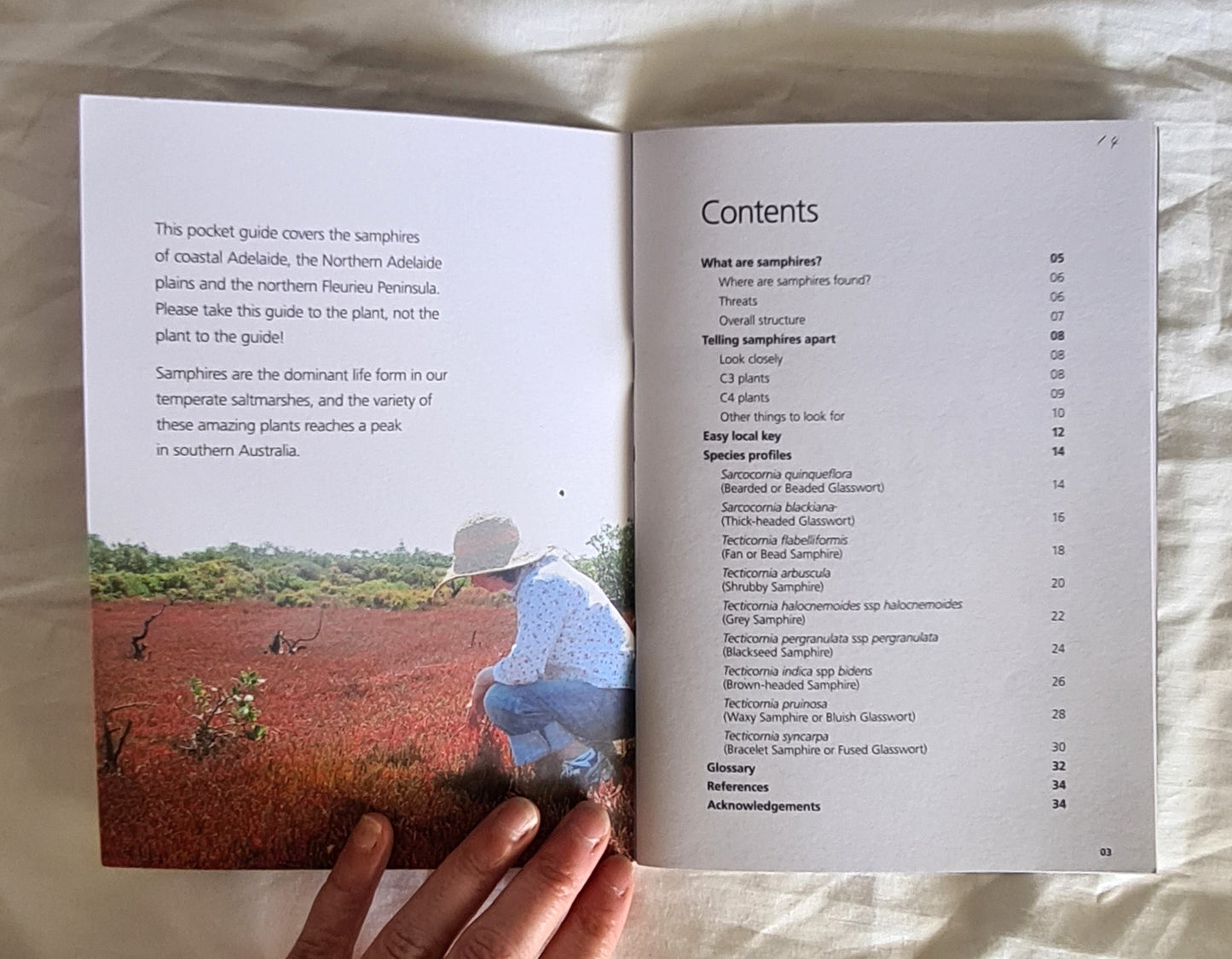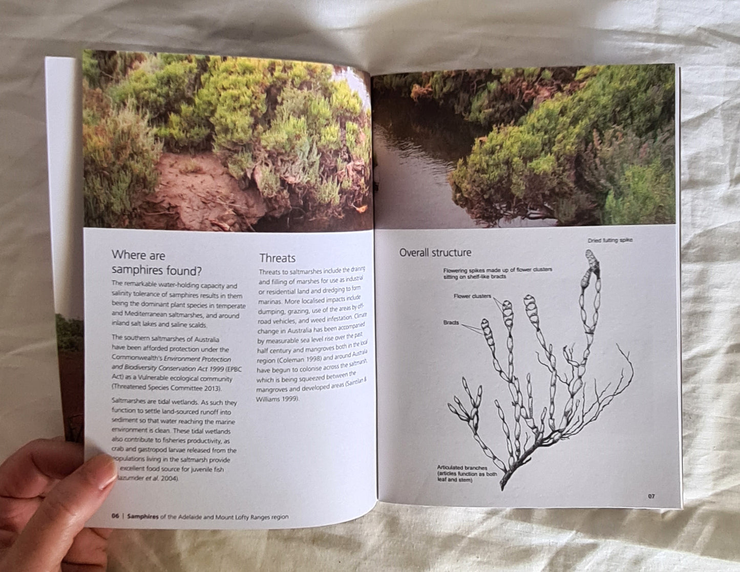 “This pocket guide covers the samphires of coastal Adelaide, the Northern Adelaide plains and the northern Fleurieu Peninsula. Please take this guide to the plant, not the plant to the guide!.