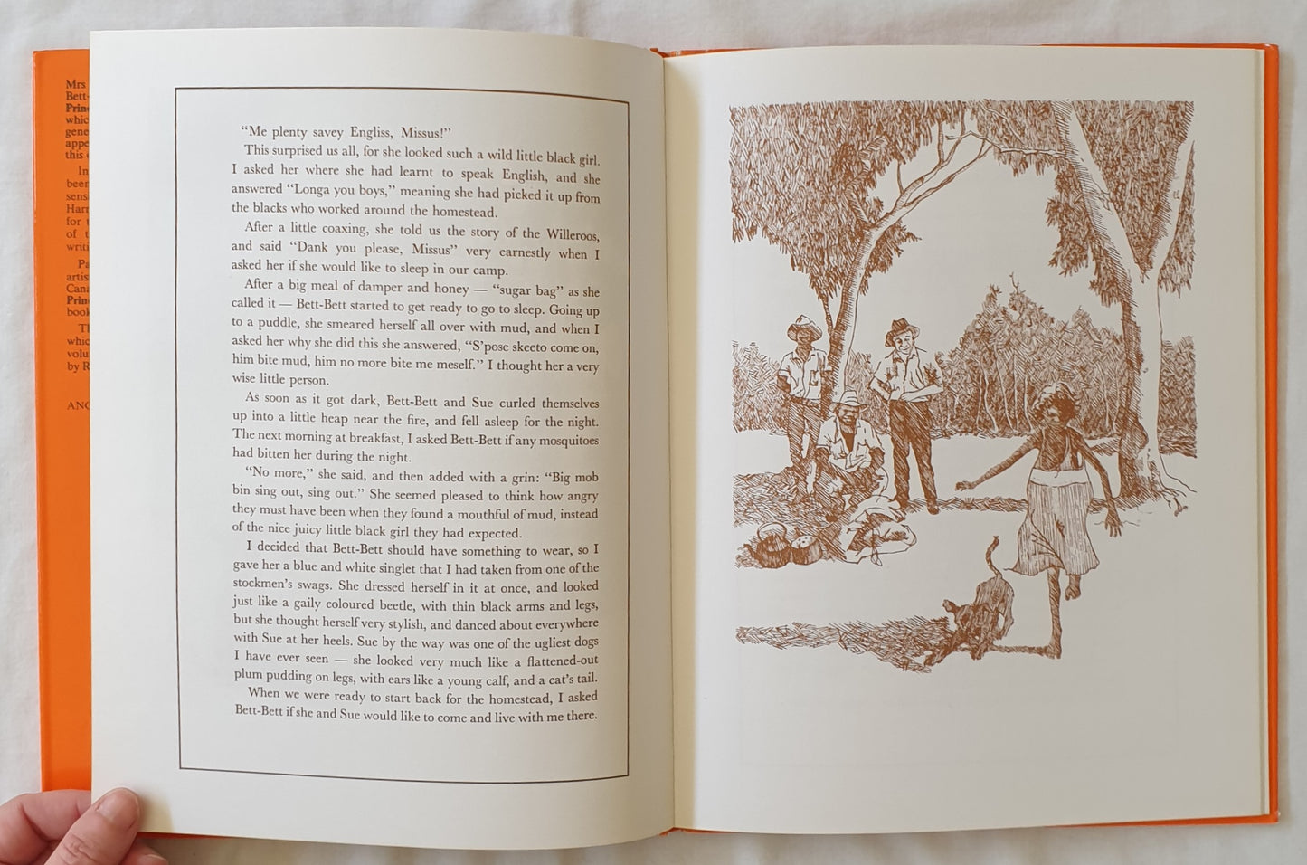“Mrs Aeneas Gunn’s story of Bett-Bett, The Little Black Princess, is an Australian classic which has been read to generations of children since it appeared in the early years of this century. In this edition the text has been complemented by the sensitive illustrations of Pam Harris which effectively capture for the child a visual impression of the context of Mrs Gunn’s writing.