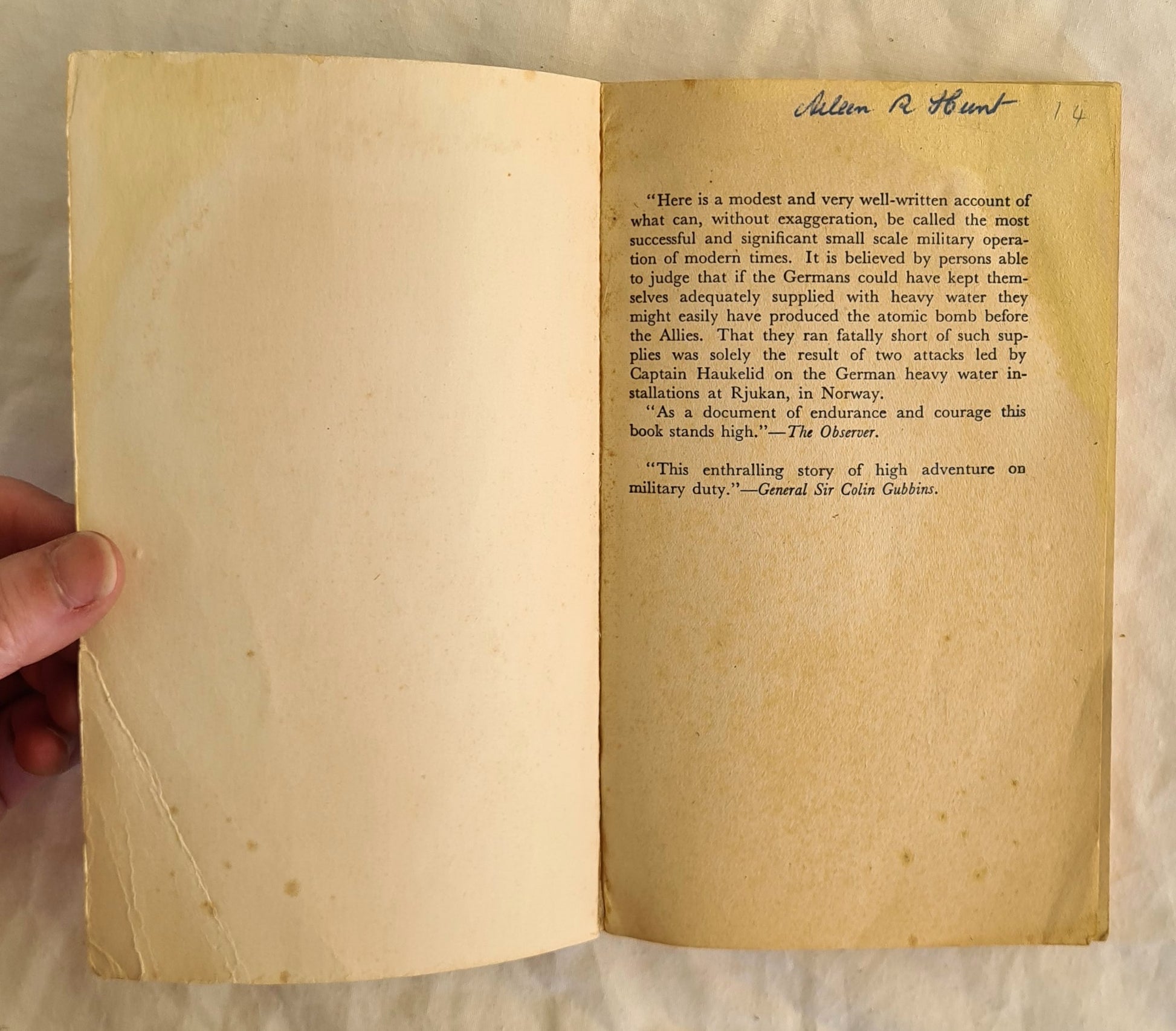 “Here is a modest and very well-written account of what can, without exaggeration, be called the most successful and significant small scale military operation of modern times. It is believed by persons able to judge that if the Germans could have kept themselves adequately supplied with heavy water they might easily have produced the atomic bomb before the Allies. That they ran fatally short of such supplies was solely the result of two attacks led by Captain Haukelid on the German heavy water installations at Rjukan in Norway.”