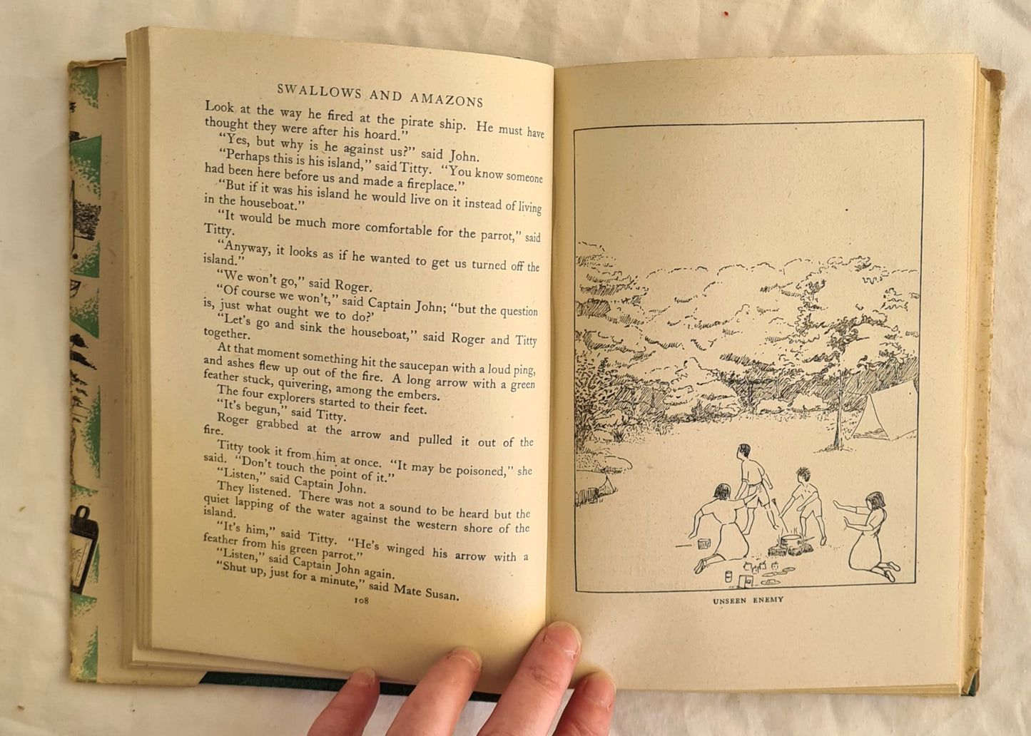 “The first title in Arthur Ransome's classic series, originally published in 1930: for children, for grownups, for anyone captivated by the world of adventure and imagination. Swallows and Amazons introduces the lovable Walker family, the camp on Wild Cat island, the able-bodied catboat Swallow, and the two intrepid Amazons, Nancy and Peggy Blackett.”