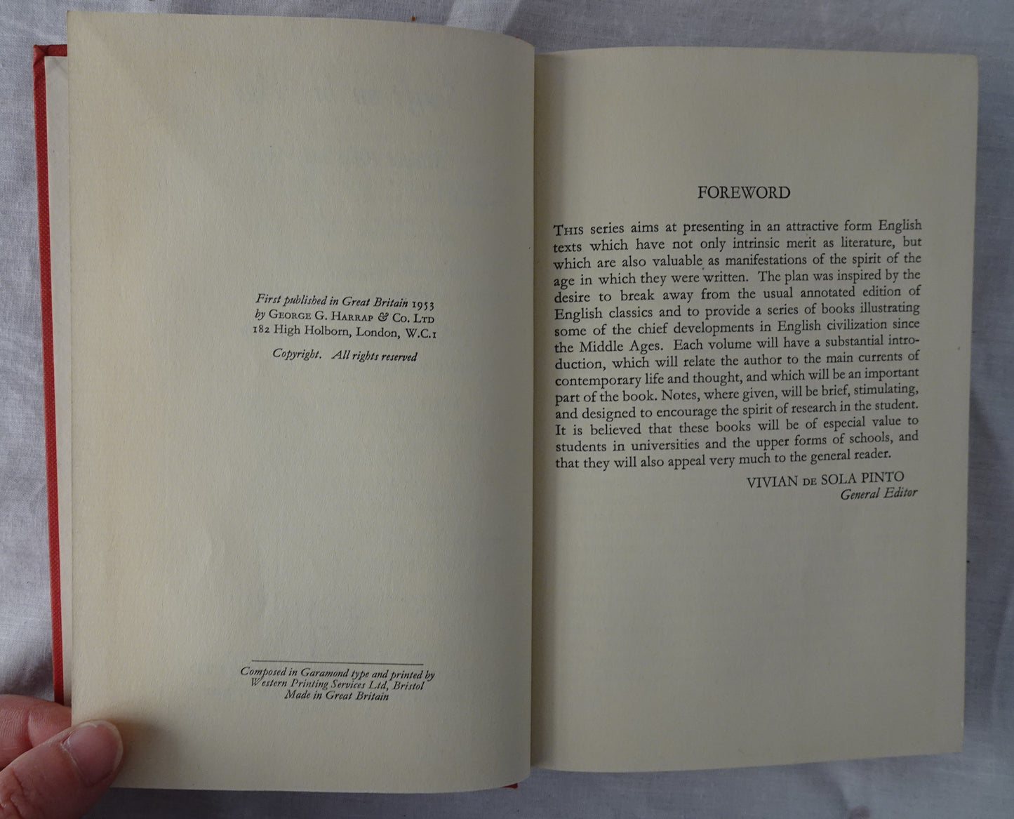“This series aims at presenting in an attractive form English texts which have not only intrinsic merit as literature, but which are also valuable as manifestations of the spirit of the age in which they were written. The plan was inspired by the desire to break away from the usual annotated edition of English classics and to provide a series of books illustrating some of the chief developments in English civilisation since the Middle Ages.”