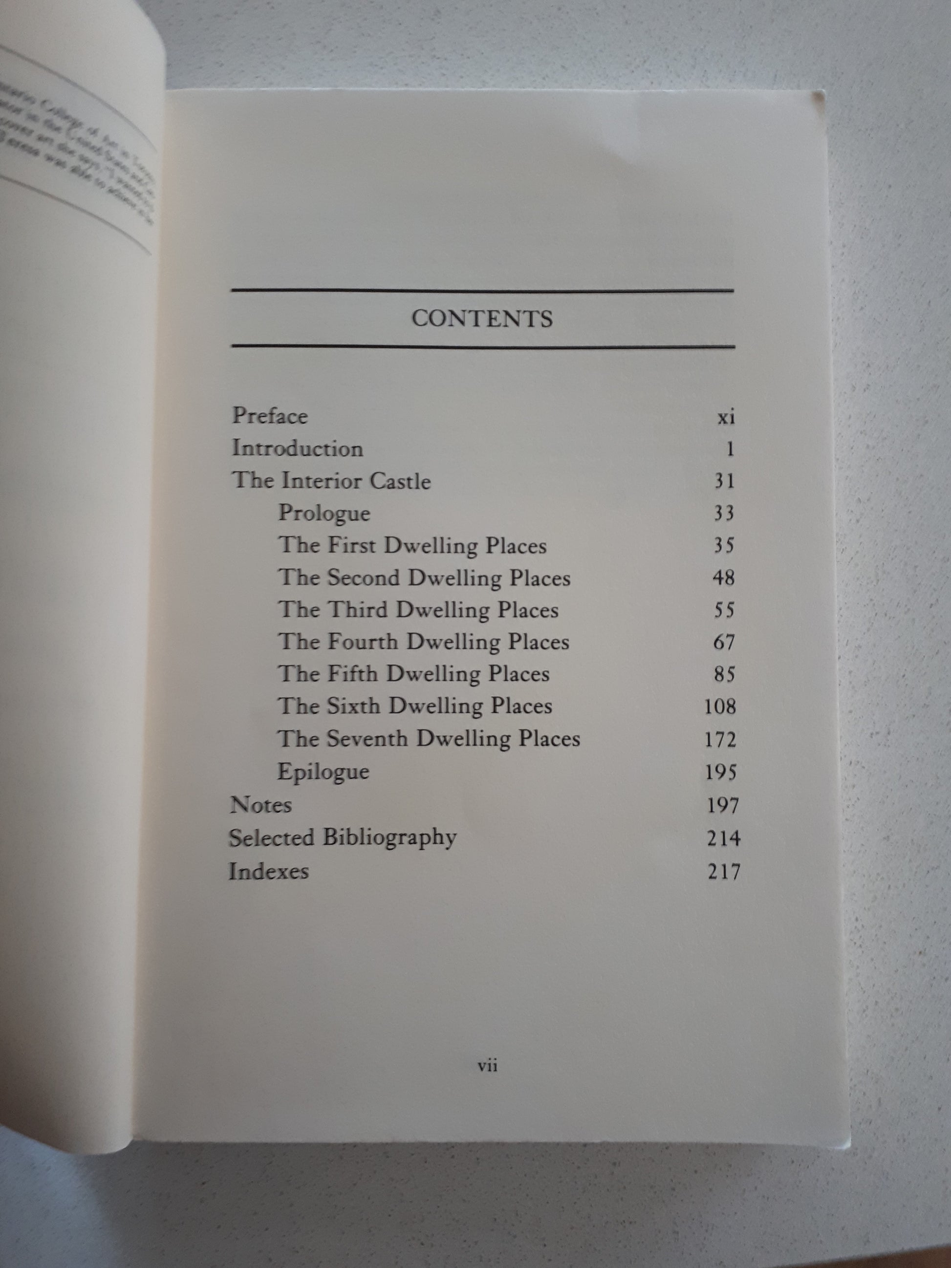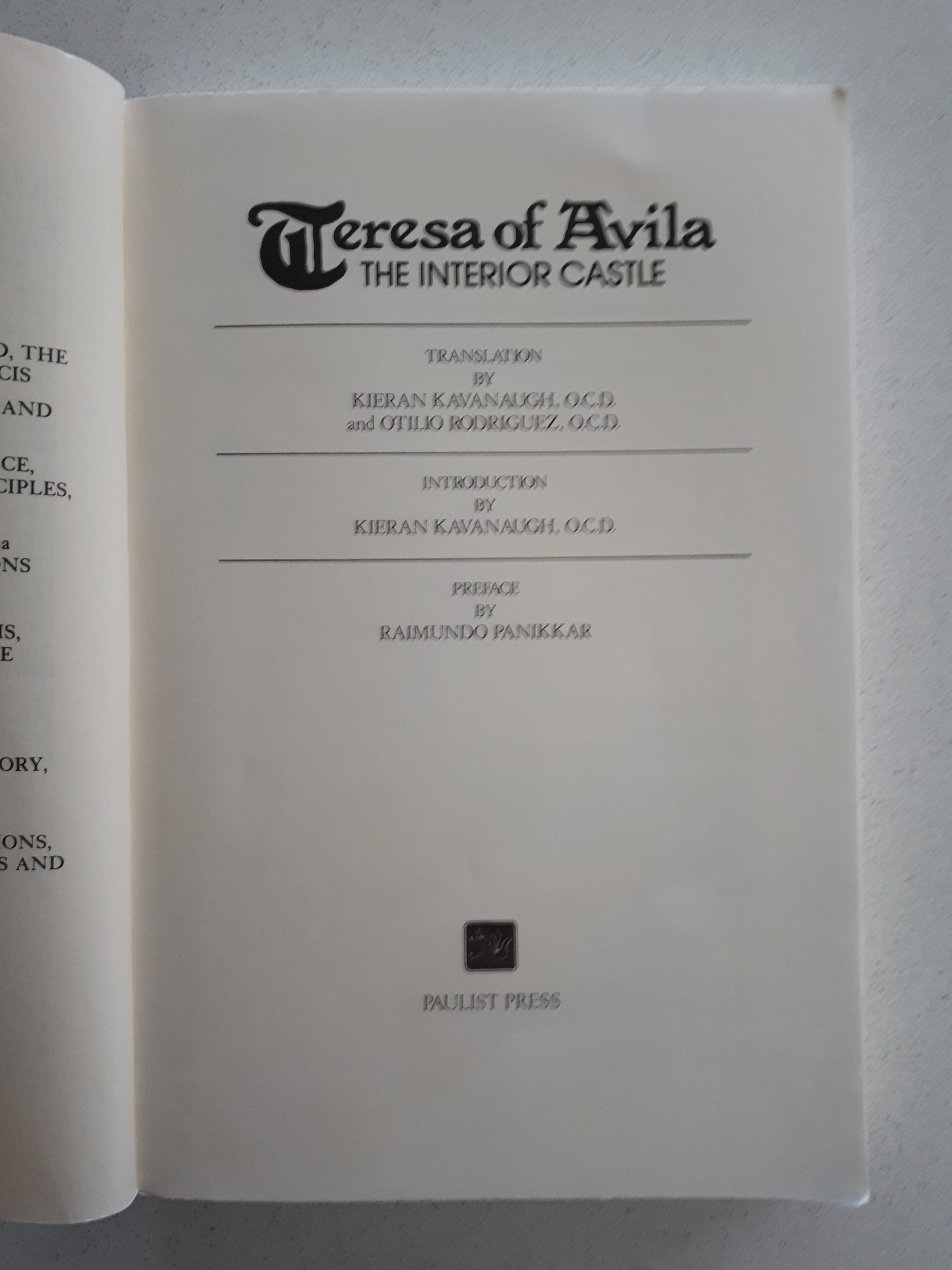 'This 16th-century Spanish mystic is considered one of the most profound spiritual teachers in the history of Christianity. Father Kieran Kavanagh, the editor of this volume, says in his introductions, "The Interior Castle has come to be regarded as Teresa's best synthesis ...If asked to single out one work as her masterpiece, most of those acquainted with the Teresian writings would probably choose The Interior Castle". Teresa received the image of the whole book in a vision on Trinity Sunday, 1577. An early biographer says that she behold 'a most beautiful crystal globe like a castle in which she saw seven dwelling places, and in the seventh, which was in the center, the King of Glory dwelt in the greatest splendor."'