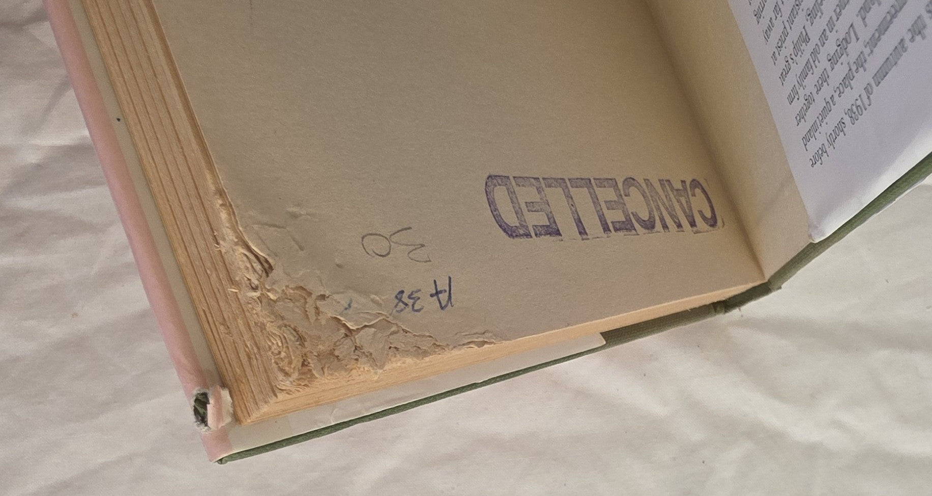 Good Condition, a little edge and shelf wear, a little rubbing and bumping to edges and corners, ex-lib with stamp to front endpaper, stamp and sticker to back endpaper, damaged top corner to text block, age toned pages, dustjacket in good condition with a little crumpling and minor discolouration (see photographs)
