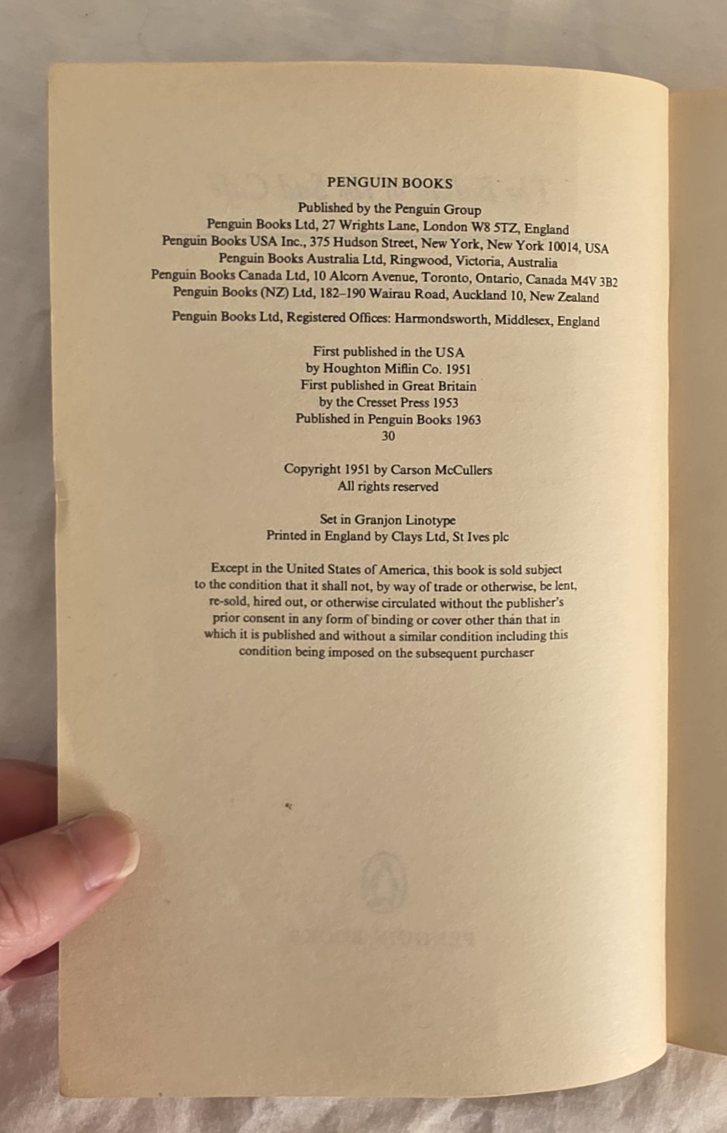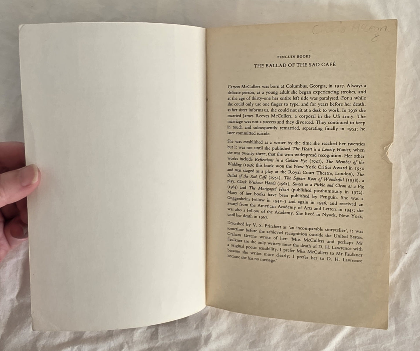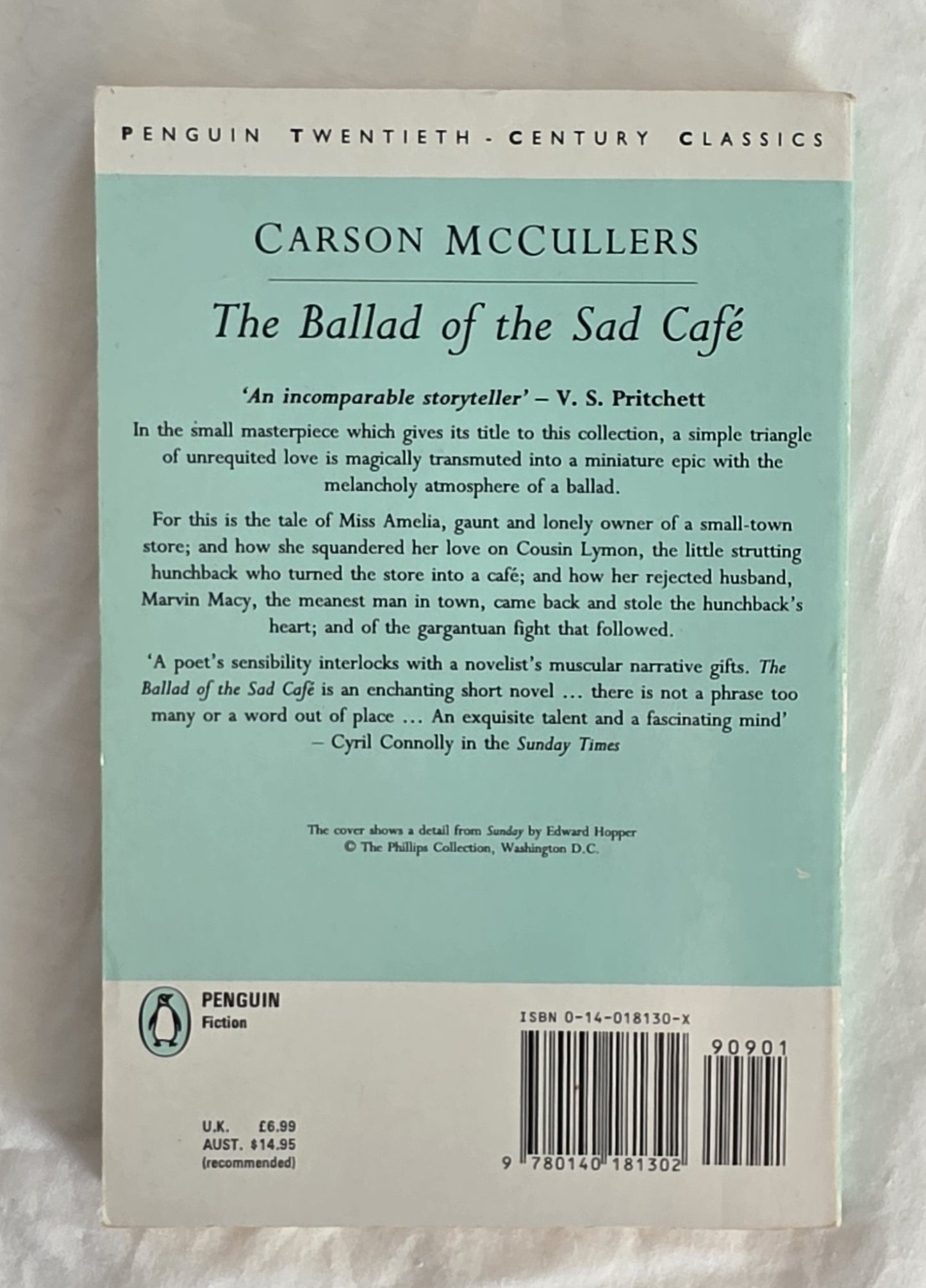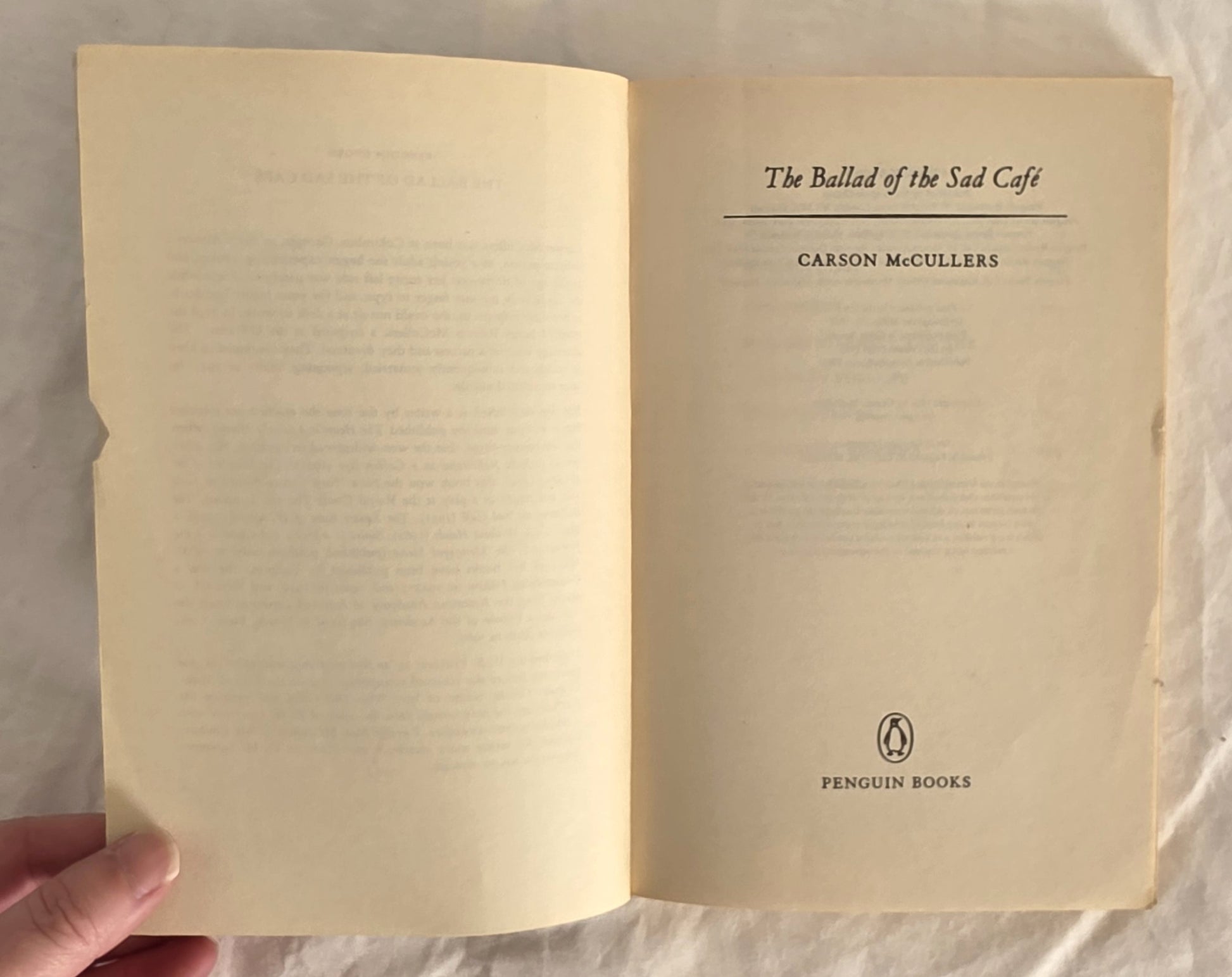 For this is the tale of Miss Amelia, gaunt and lonely owner of a small-town store; and how she squandered her love on Cousin Lymon, the little strutting hunchback who turned the store into a café; and how her rejected husband, Marvin Macy, the meanest man in town, came back and stole the hunchback’s heart; and of the gargantuan fight that followed.”