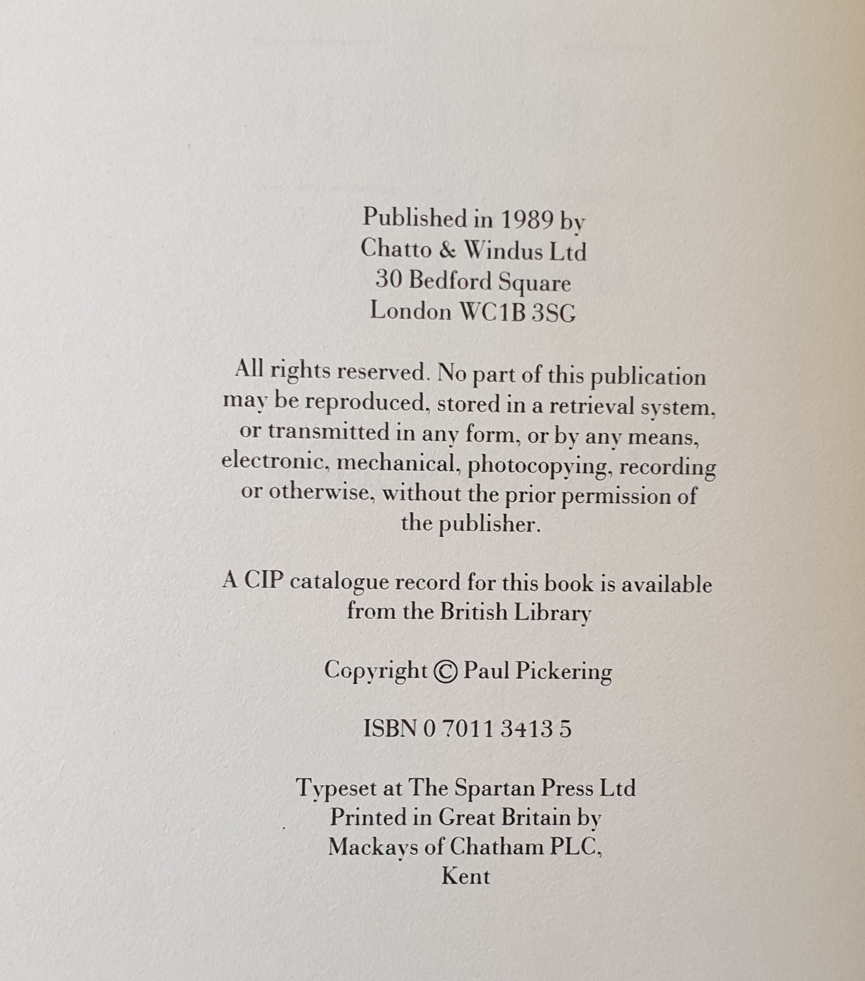 Chatto & Windus, 1989, [First Edition], ISBN 0701134135, hardcover, dustjacket