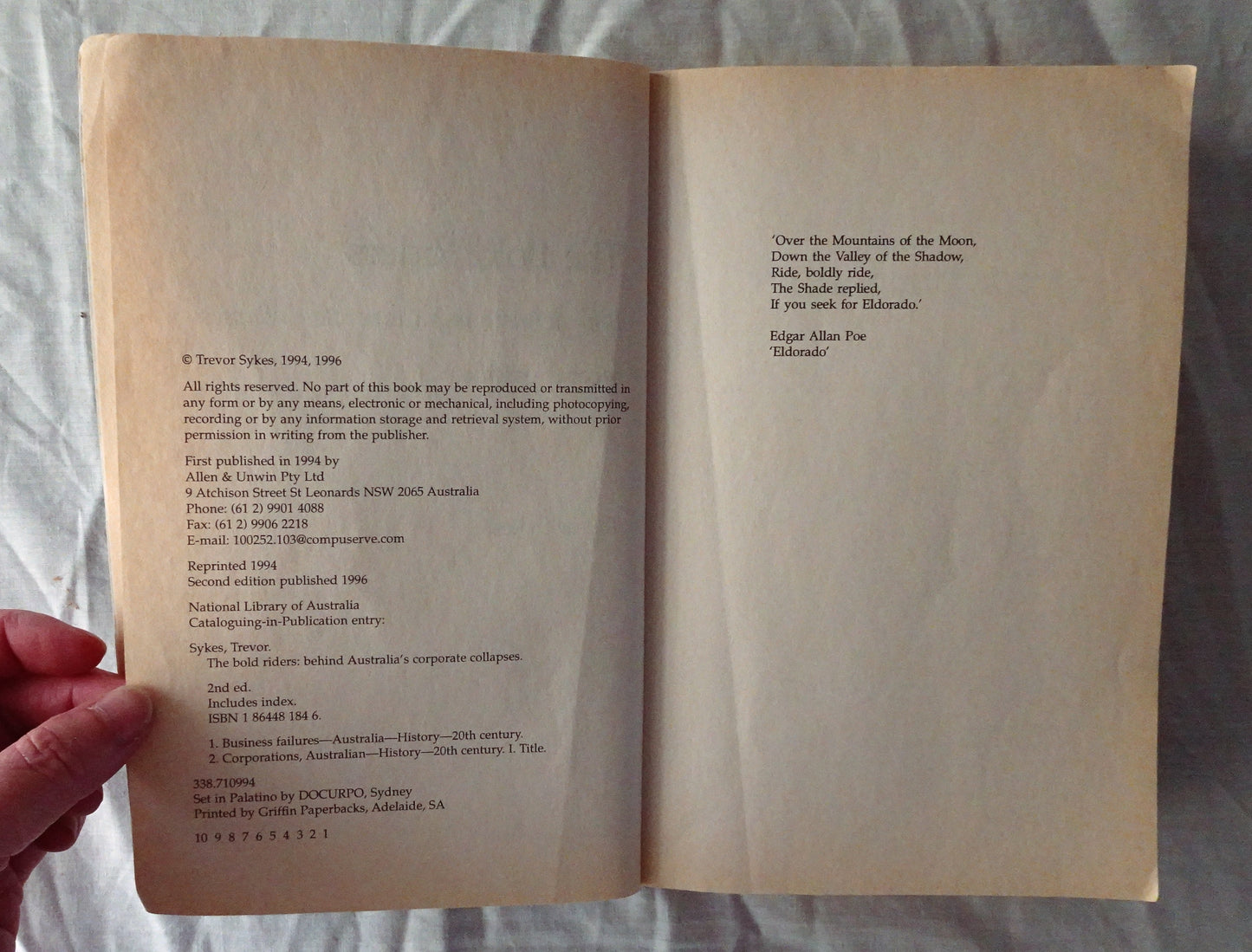 The Bold Riders was published in 1994 to an avalanche of critical acclaim. Trevor Sykes has revised and updated this paperback edition to take account of new developments and further changes to the legacy of the 1980s.”