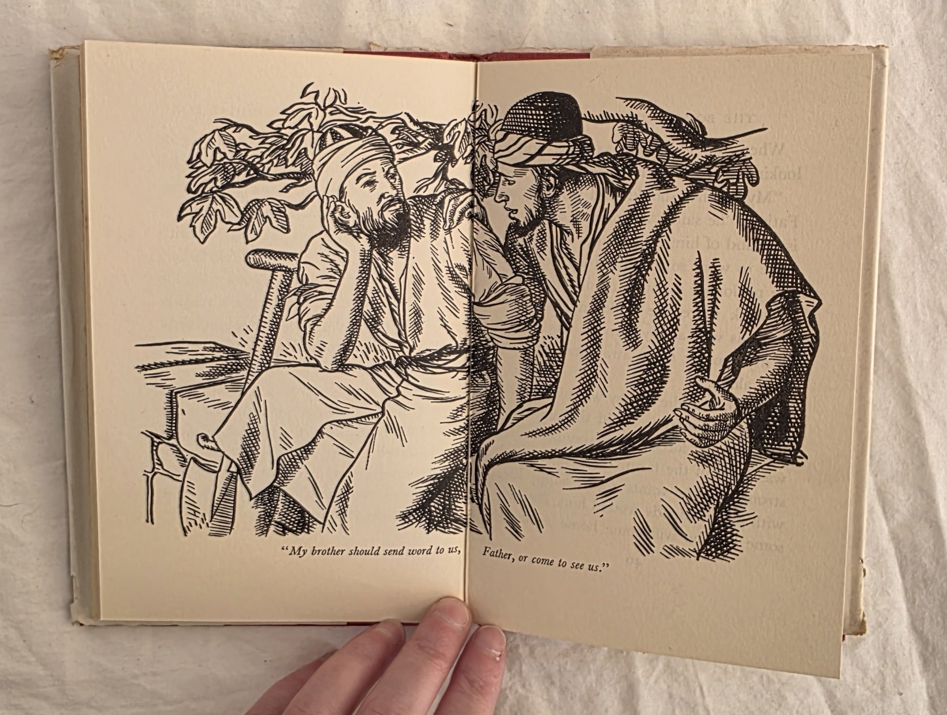 “Everywhere that Jesus went the people followed, eager to hear one of the stories that the Master told. One day, long ago, he told a wonderful story that we al know; about a boy who wanted to leave his father’s farm, and go to the city to be rich, and never do any work, and be admired by all his friends.”