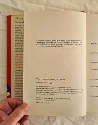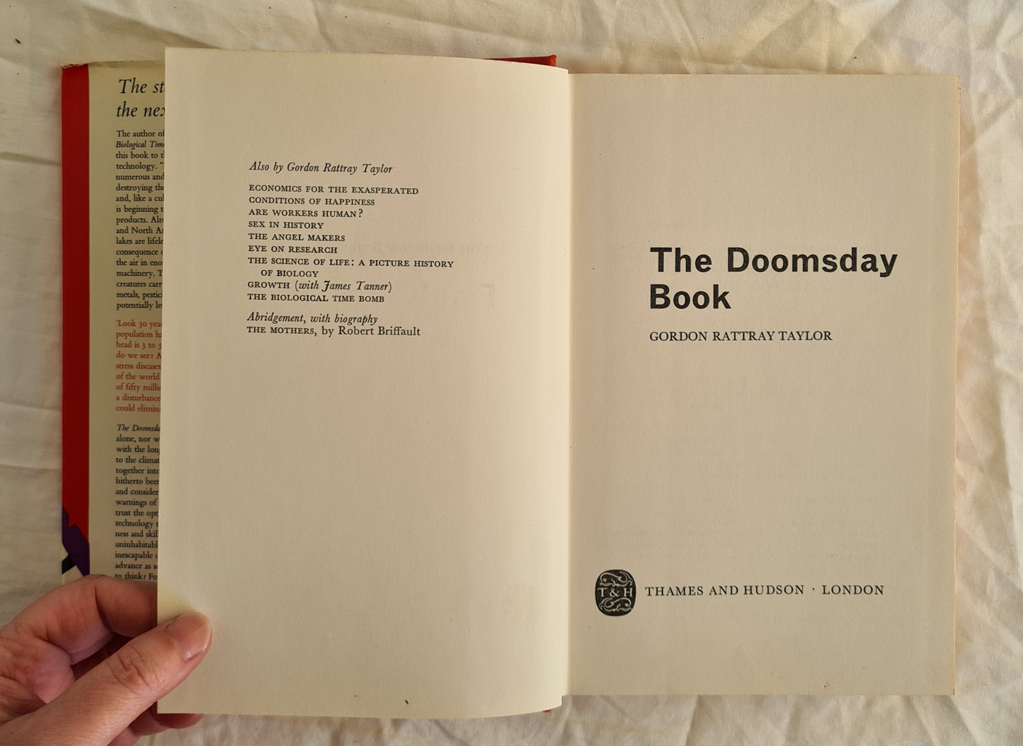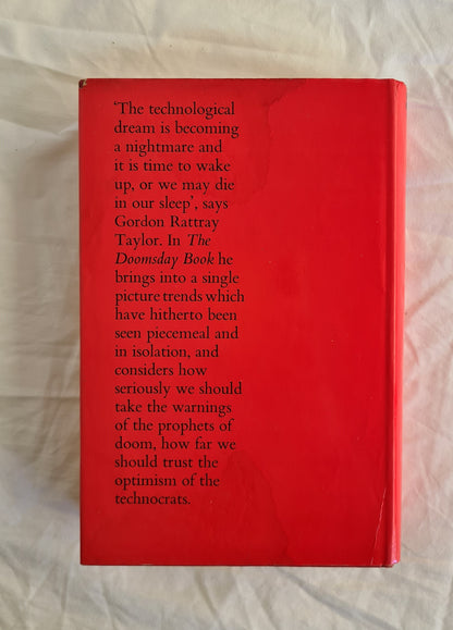 “The Doomsday Book is not concerned with pollution alone, nor with the population explosion, nor with the long-term changes which man is making to the climate and the atmosphere. It brings together into a single picture trends which have hitherto been seen piecemeal and in isolation, and considerers how seriously we should take the warnings of the scientists, how far we should trust the optimism of the technocrats. For it is technology that is guilty. It is human inventiveness and skill that is rapidly making the planet uninhabitable. And this faces us with the inescapable question: must we apply each new advance as soon as it is made, or can we stop to think? For, as the author of this challenging book points out, ‘the technological dream is becoming a nightmare and it is time to wake up, or we may die in our sleep.’