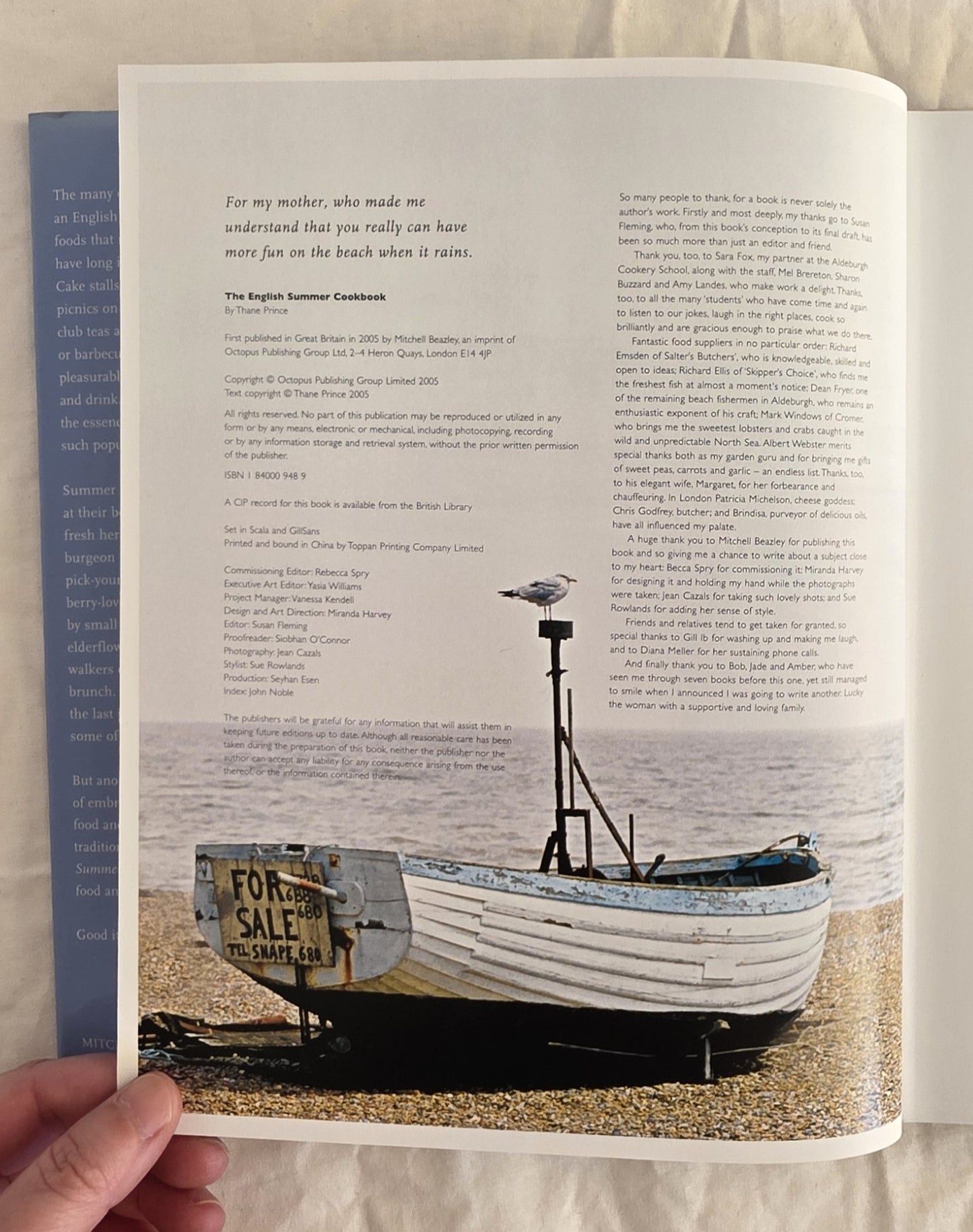 “The many occasions that mark an English summer and the foods that make them special have long inspired us to cook. Cake stalls at a village fete, picnics on the beach, cricket club teas and a garden lunch or barbeque are all made more pleasurable with the right food and drink. The English Summer Cookbook captures the essence of the season with recipes created for such popular pastimes.”