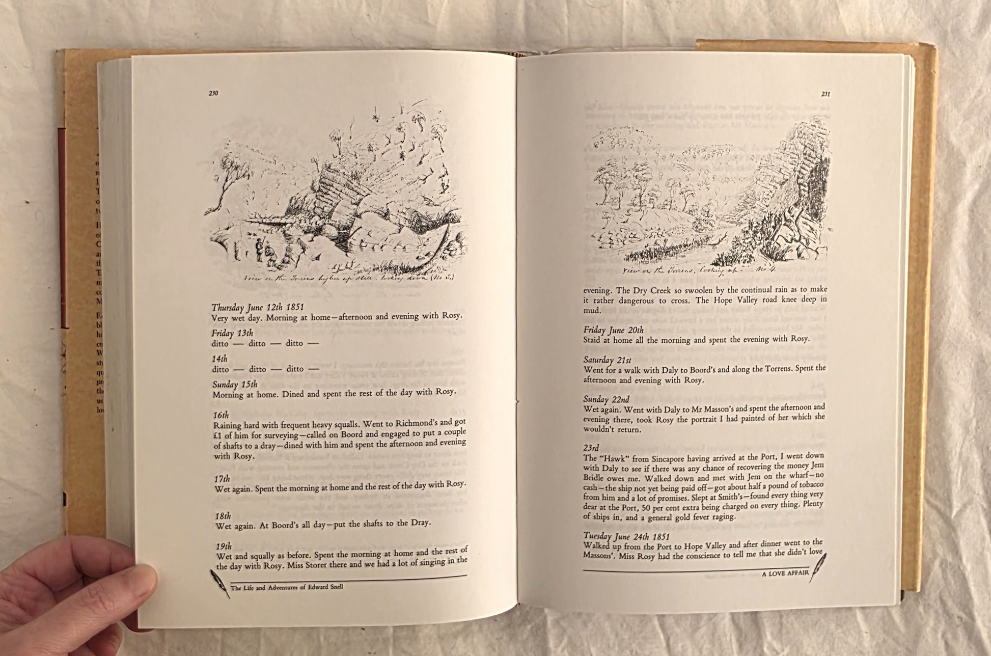 “Edward Snell was an engineer, surveyor, artist and adventurer, but above all he was a diarist. The part of his life that was least public is the reason he will be remembered. He kept two diaries – one in England from 1842 to 1849 and one in Australia from 1849 to 1859. They are both literary and artistic delights, the repositories of Snell’s humour, reflections and tales of his life in tow hemispheres.”