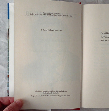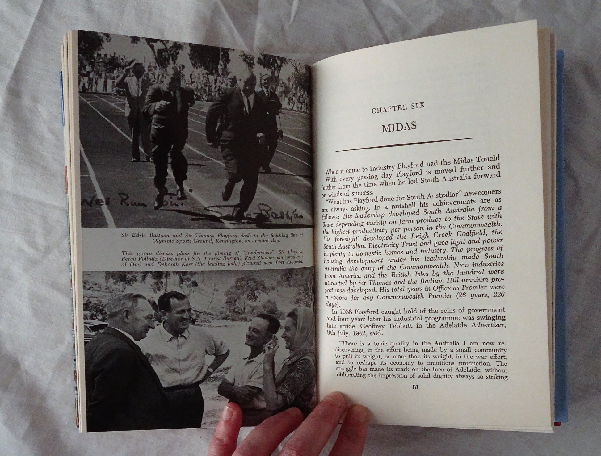 It is very rare for any man to become a legend in his own lifetime; more particularly in his native city, but Sir Thomas Playford has become this and more. Through his biography we see the progress and development of South Australia which is the highest tribute that can be paid to this great statesman.”